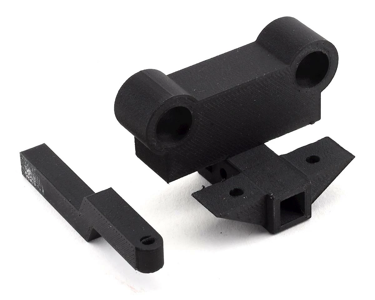 The Powershift HPI Venture FJ Hitch is a 3D printed scale upgrade that will allow you to mount a hitch to the stock rear bumper assembly. Printed from carbon nylon material, this hitch is easily strong enough to haul car trailers, and trail trailers. The receiver half slides over the stock bumper posts, and has screw mounts that will allow you to add two M3 screws to the secure the receiver to the bumper for increased strength. A hitch ball is not included and must be supplied by the user.