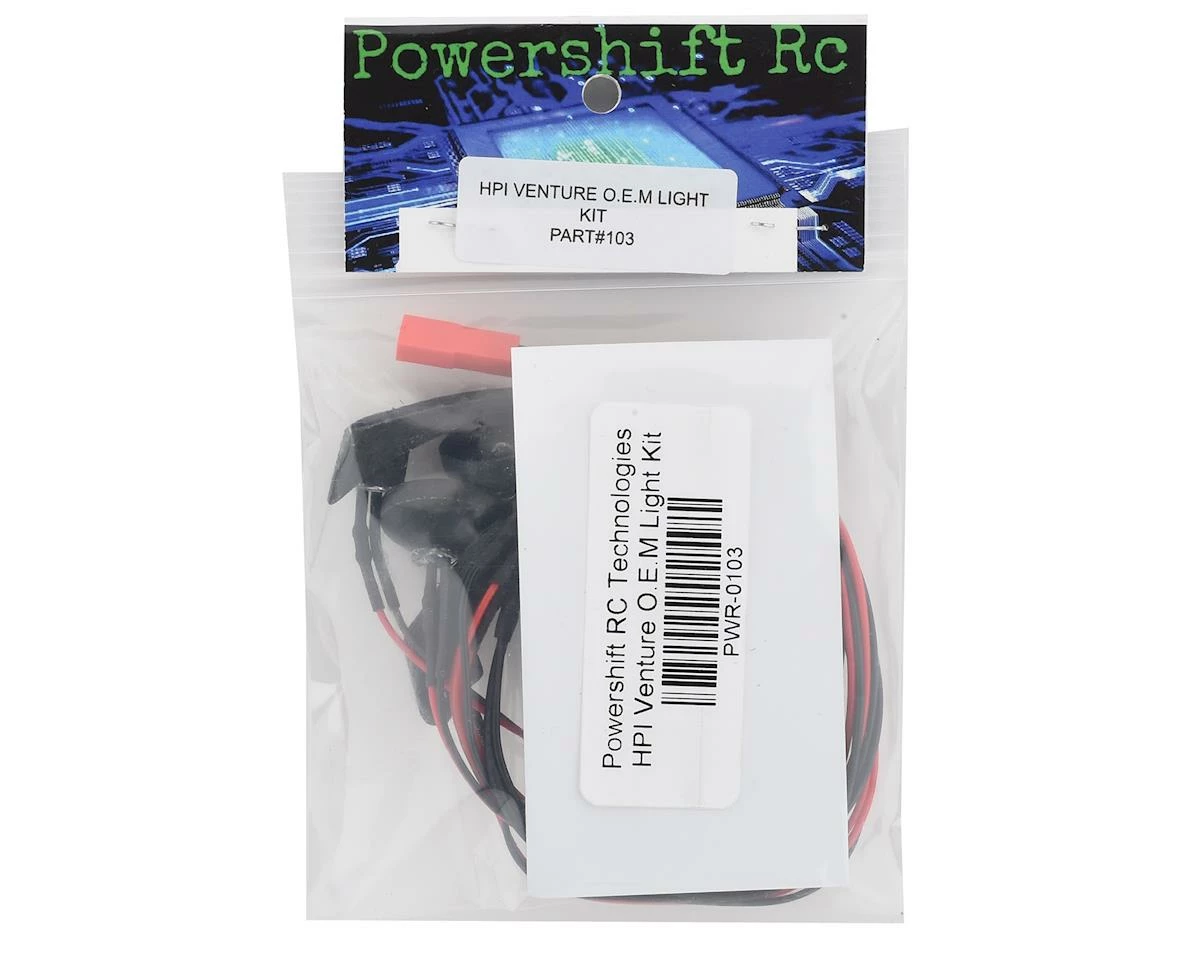 The Powershift HPI Venture O.E.M Light Kit makes it easy to add lights to your rig. This is a complete plug and play light kit that is ready for installation when you pull it out of the bag! The kit features 5mm white LED lights for the front lights, amber 5mm LED running lights, with 5mm red LED tail lights. Plus, the lights are easy to install using your preferred rubberized adhesive to secure the light buckets.