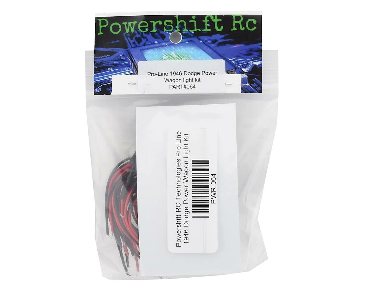 The Powershift Pro-Line 1946 Dodge Power Wagon Light Kit gives you the lights you need to elevate your Power Wagon above the rest. This light kit includes headlights, marker lights, fog lights and tail lights with open ended wires that are pre-tinned and ready for your connectors. The kit features carbon nylon printed light buckets with translucent colored lenses that will give your Power Wagon an improved scale look, with powerful lights that will pierce the dark. The light buckets are easy to install by drilling mounting holes in the body and using your preferred rubberized adhesive to secure the light buckets to the body.