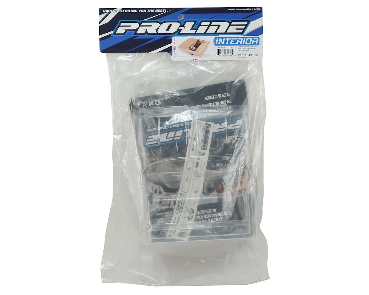 The Pro-Line 1/10 Crawler Body Classic Interior features a bench style front seat for added scale realism and fits perfectly with Pro-Line’s 1966 Chevrolet C-10 body and other Classic Truck Cabs! The dash allows you to add your own scale steering wheel and the interior includes many carefully sculpted details common to Classic Trucks. Decals are included.