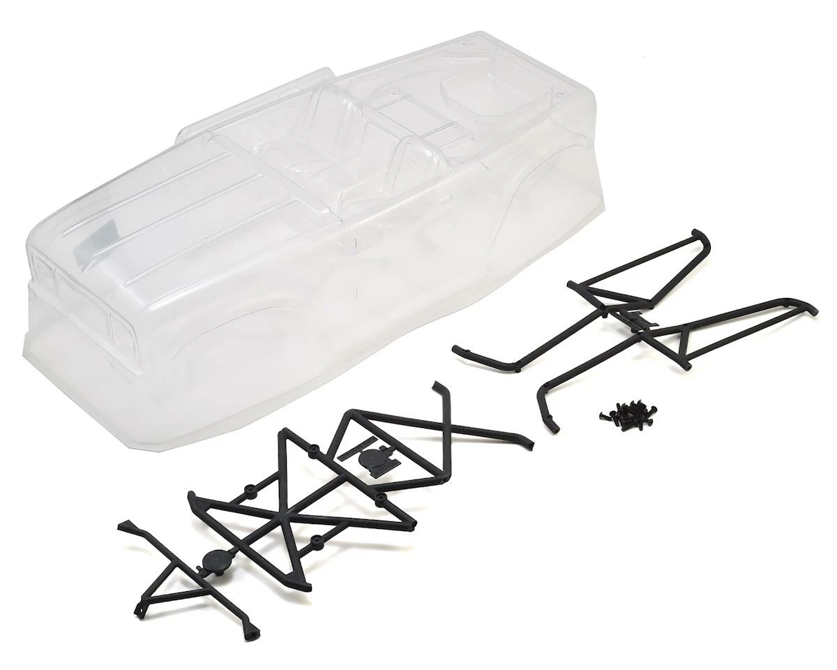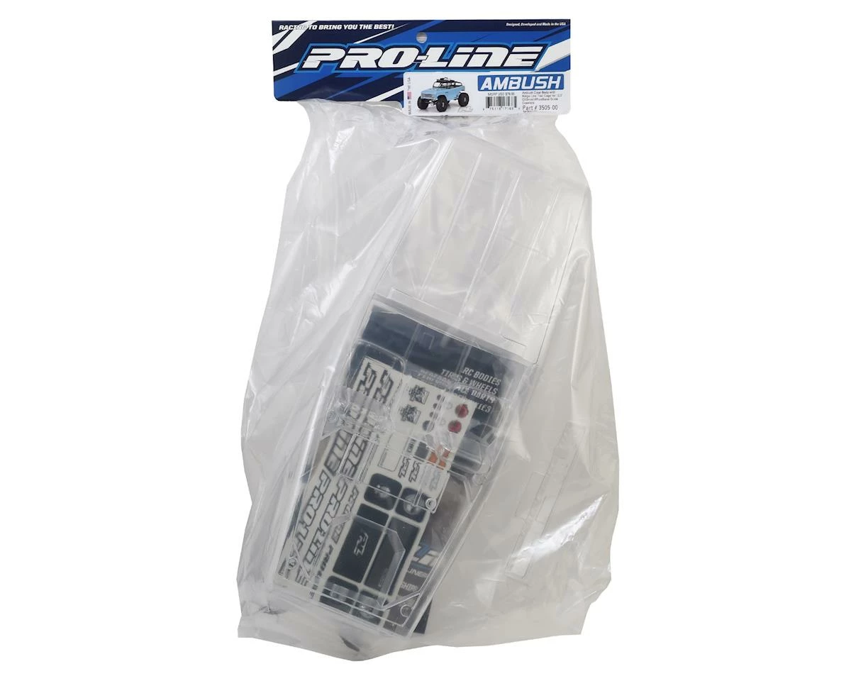 The Pro-Line Ambush Crawler Body was originally released years ago, well before scale crawling went “mainstream”. So Pro-Line has updated the body style for more modern tastes. The Ambush body includes Pro-Line’s Ridge-Line Trail Cage molded to replicate full scale cages and accepts Pro-Line’s Overland Scale Roof Rack (sold separately) for adding scale accessories like the 4″ LED Light Bar (sold separately). The Ambush body features a scale interior complete with seats and a separate dash along with a rear gas tank and trunk space for installing even more scale accessories.