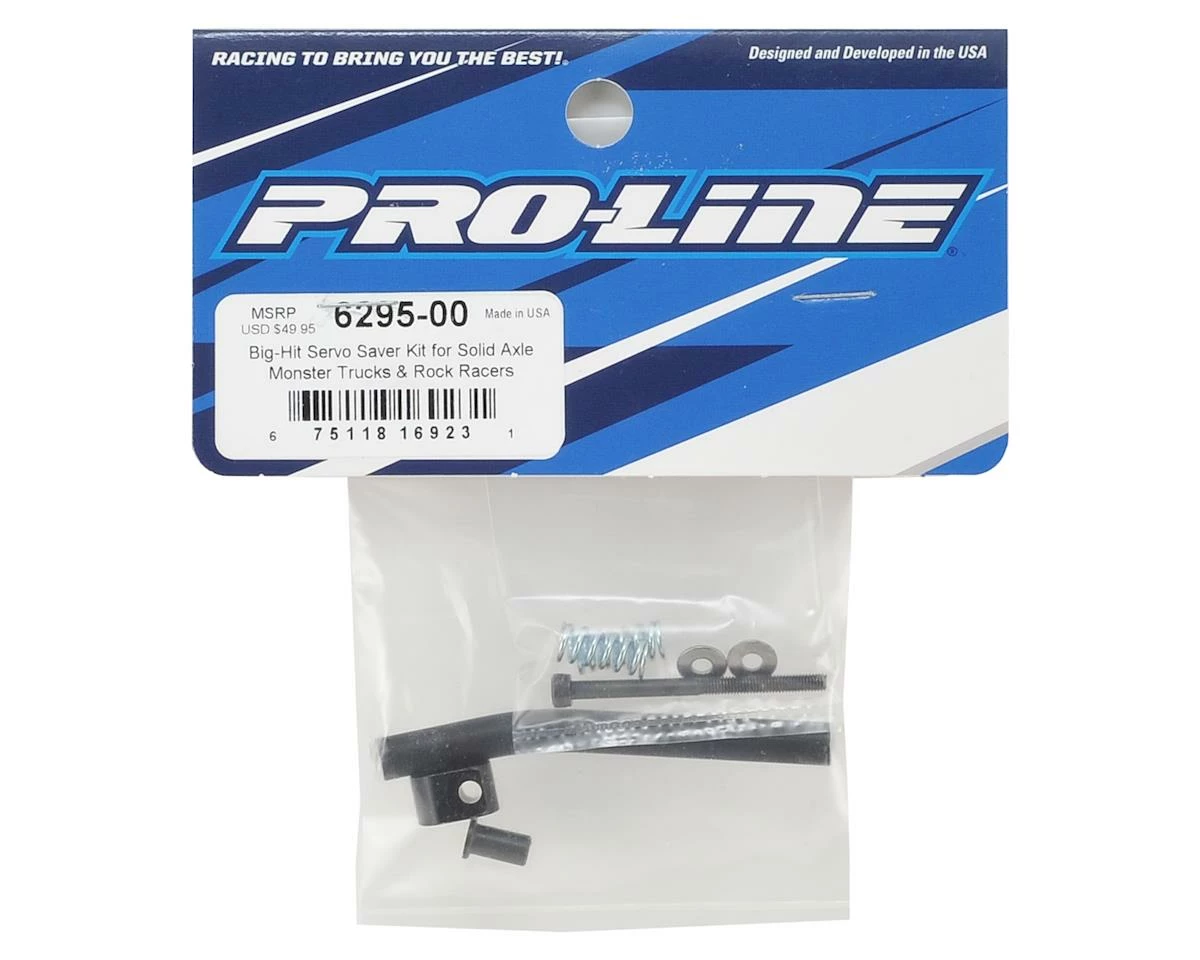 The Pro-Line Big-Hit Solid Axle Servo Saver Kit was designed to absorb big hits, while still providing precision steering feel. The key is the precision machined Aluminum rocker arm that is suspended between two springs on the steering linkage. The springs isolate the Servo from damaging impacts but are stiff enough to provide that precise steering input that is expected out of high end race vehicles. The Big-Hit Servo Saver Kit includes a Black Anodized Aluminum pre-bent upper steering link that will fit a wide range of popular Solid Axle Monster Trucks and Rock Racers and the rocker arm has been laser etched with a P-L logo. The best feature is that all of the machined parts were made right here in the USA!