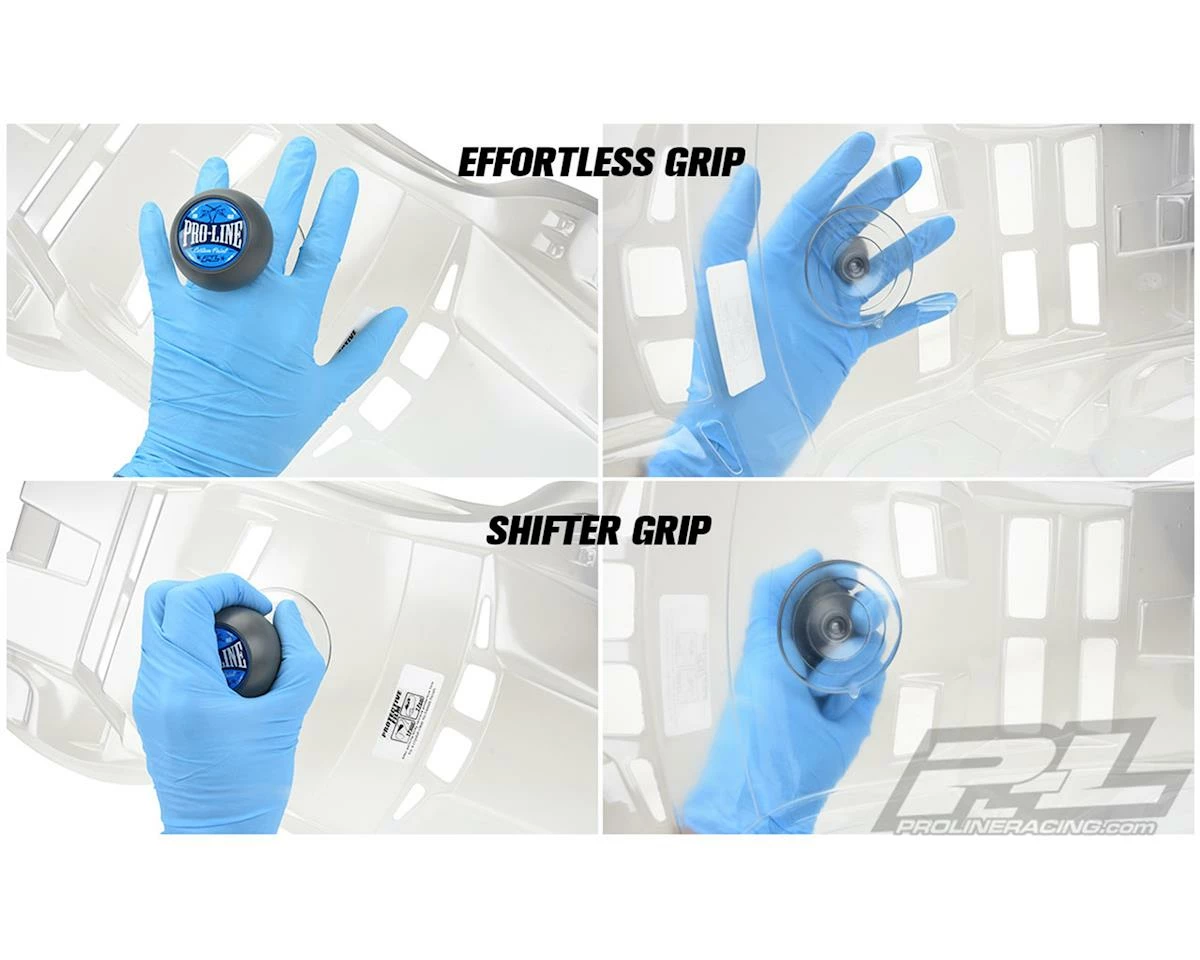 This is a custom machined tool made from Type 1 PVC and turned to match popular grip styles. The Body Grip tool includes 2 suction cups to easily adapt to many body sizes and shapes. The large cup is a 2 1/2″ (60mm) rated to hold 7 lbs and best used on the roof or windshield of larger scale bodies. The medium cup is a 1 7/8″ (45mm) rated to hold 3 lbs and best used on the roof or windshield for small scale bodies or tight areas where the large cup may not fit. To finish it off the Body Grip tool has a stylish Pro-Line “Custom Paint” decal.