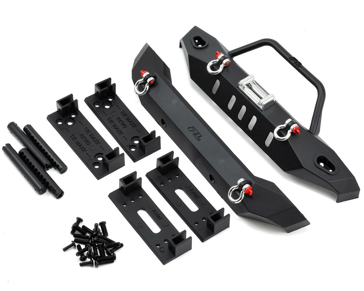 Ridge–Line Heavy Duty Bumpers are manufactured with the Scale Crawler enthusiast in mind. The PRO6089-00 Wide Bumper kit features mounting points for 3mm and 5mm LED lights, as well as dual tow points. There’s also realistically simulated roller fairlead along with several mounting points for can lights or other scale accessories. Access ports through the bumper and brackets allow for behind bumper mounting of real scale working winches (Not Included).