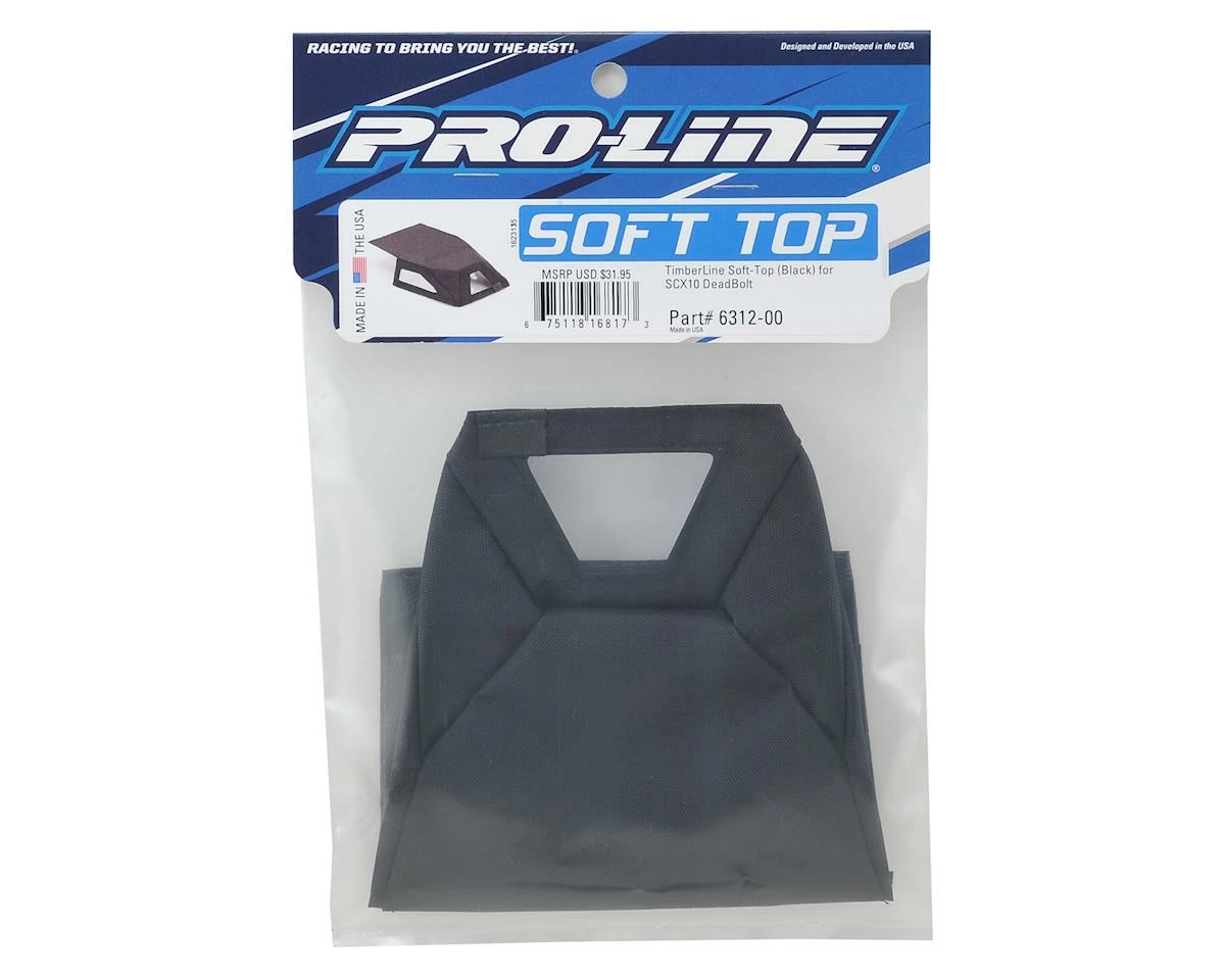 The Pro-Line SCX10 Deadbolt Timberline Softtop is made from black nylon with clear vinyl windows and fits the stock Deadbolt and G6 roll cage perfectly using the included Hook and Loop mounts. Just like a full-size soft-top, Pro-Line’s TimberLine Soft-Top checks all the right scale style boxes with clear windows, and a full length soft roof to protect your scale cargo! A small, sewn in P-L tag adorns the back so you know you are getting real Pro-Line quality.