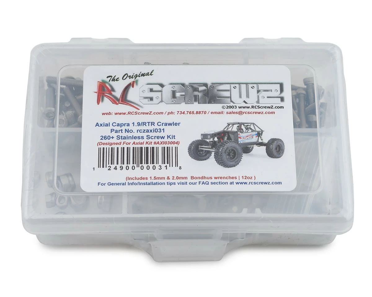 This is an optional RCScrewz Stainless Steel screw kit for the Axial Capra. RCScrewz Stainless Screw Kits are 100% complete. Your kit will include everything needed to do a full conversion and more. Stainless Steel Screw Kits are far superior to the screws that come stock with your RC. RCScrewz kits are made with the best stainless steel money can buy. No more bent, rusted, or corroded screws. Never worry about stripped heads again. You will not find a better screw kit for your RC at any price and RCScrewz Guarantee’s it. If for any reason you’re not 100% satisfied with your kit, return your screw kit to RCScrewz and they will send you a full refund for the price of the kit.