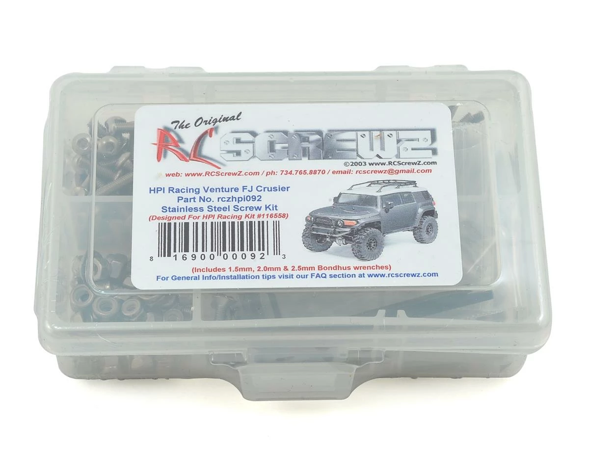 This is an optional RCScrewz Stainless Steel screw kit for the HPI Venture FJ. RCScrewz Stainless Screw Kits are 100% complete. Your kit will include everything needed to do a full conversion and more. Stainless Steel Screw Kits are far superior to the screws that come stock with your RC. RCScrewz kits are made with the best stainless steel money can buy. No more bent, rusted, or corroded screws. Never worry about stripped heads again. You will not find a better screw kit for your RC at any price and RCScrewz Guarantee’s it. If for any reason you’re not 100% satisfied with your kit, return your screw kit to RCScrewz and they will send you a full refund for the price of the kit.