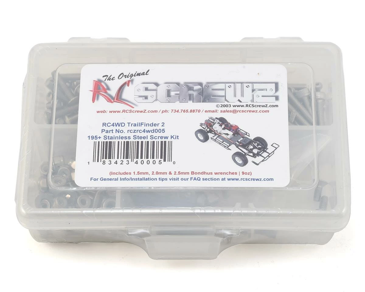 This is an optional RCScrewz Stainless Steel screw kit for the RC4WD Trail Finder II. RCScrewz Stainless Screw Kits are 100% complete. Your kit will include everything needed to do a full conversion and more. Stainless Steel Screw Kits are far superior to the screws that come stock with your RC. RCScrewz kits are made with the best stainless steel money can buy. No more bent, rusted, or corroded screws. Never worry about stripped heads again. You will not find a better screw kit for your RC at any price and RCScrewz Guarantee’s it. If for any reason you’re not 100% satisfied with your kit, return your screw kit to RCScrewz and they will send you a full refund for the price of the kit.