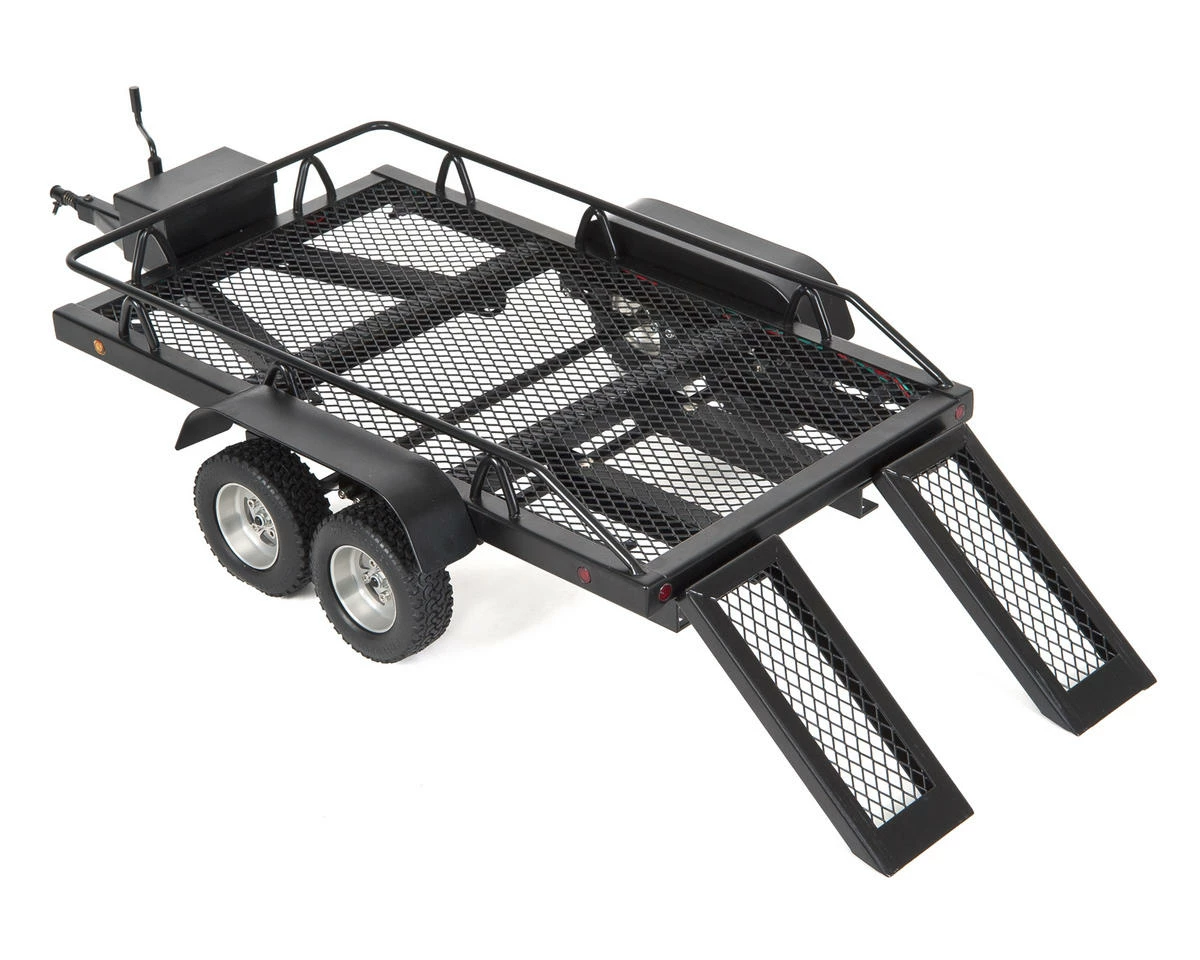 The RC4WD 1/10 Bigdog Dual Axle Scale Car/Truck Trailer is perfect for towing your rig around at an event, or showing off your setup in photos. Dual axles provide extra towing capacity and fully functional leaf springs provide a realistic feel when you are towing your rig, while the sliding ramps, working LED lights and battery/switch storage box on the front give this trailer the realism that scale enthusiasts demand.