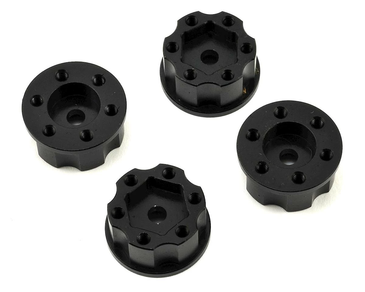 RC4WD 6 Lug Steel Wheel +6 Hex Hubs are an option for RC4WD 6 Lug Stamped, Mickey Thompson MT-28 and Classic Lock, and Raceline Monster wheels. These machined aluminum hubs will increase track width by 6mm per side (when compared to the stock hubs), and will give your stamped wheels 4.75mm backspacing. Package includes four +6 hubs.