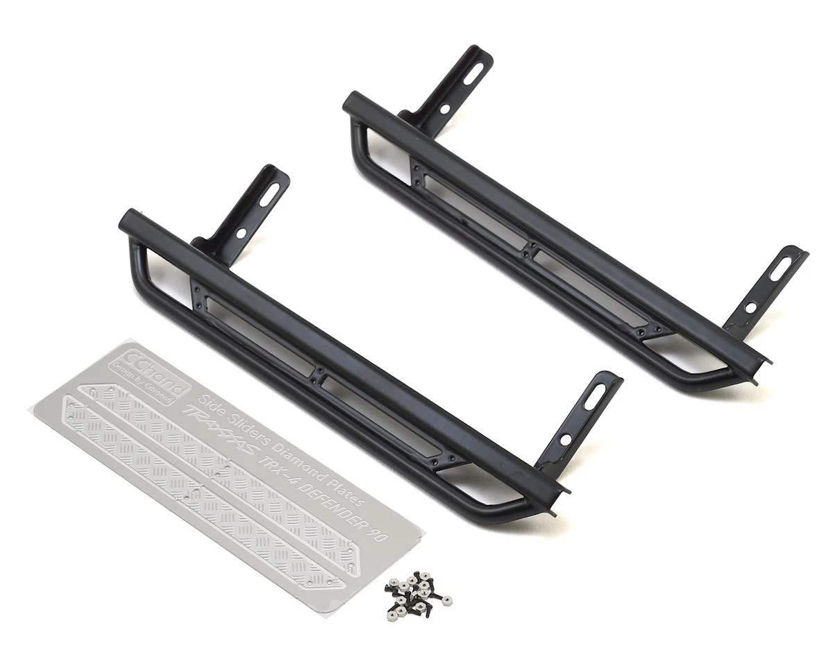 The RC4WD CChand Traxxas TRX-4 Rook Metal Rock Sliders are a great upgrade for both the Defender and Tactical models! By combining welded, black powder coated steel components with etched stainless accessories, these sliders will add protection and a great look to your TRX-4. Plus, all the hardware needed for assembly is included (use stock mounting hardware).