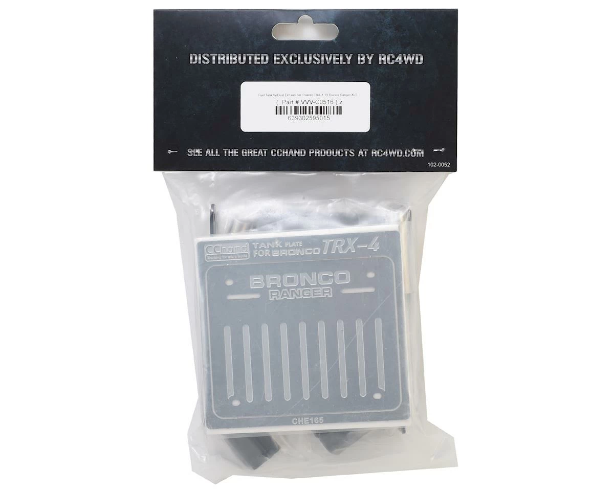 The RC4WD CChand TRX-4 Bronco Fuel Tank with Dual Exhaust adds a touch of realism to your Bronco build. By combining hand crafted steel components with injection molded and laser etched parts, this kit will give your Bronco the realistic look of a fuel tank and dual exhaust that the rig deserves.