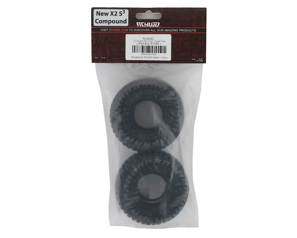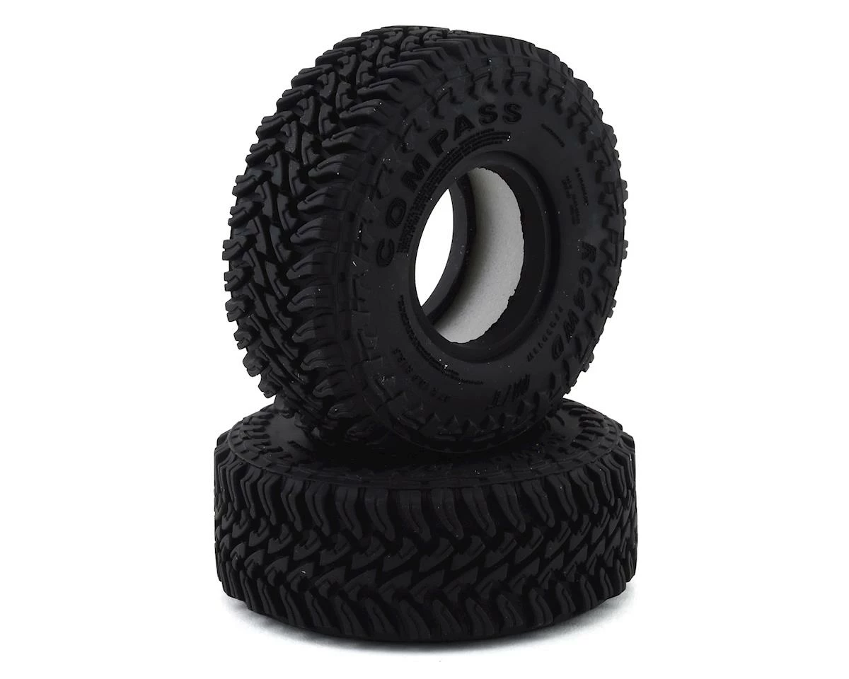 RC4WD Compass M/T 1.55″ Scale Rock Crawler Tires. Package includes two tires and two foam tire inserts.