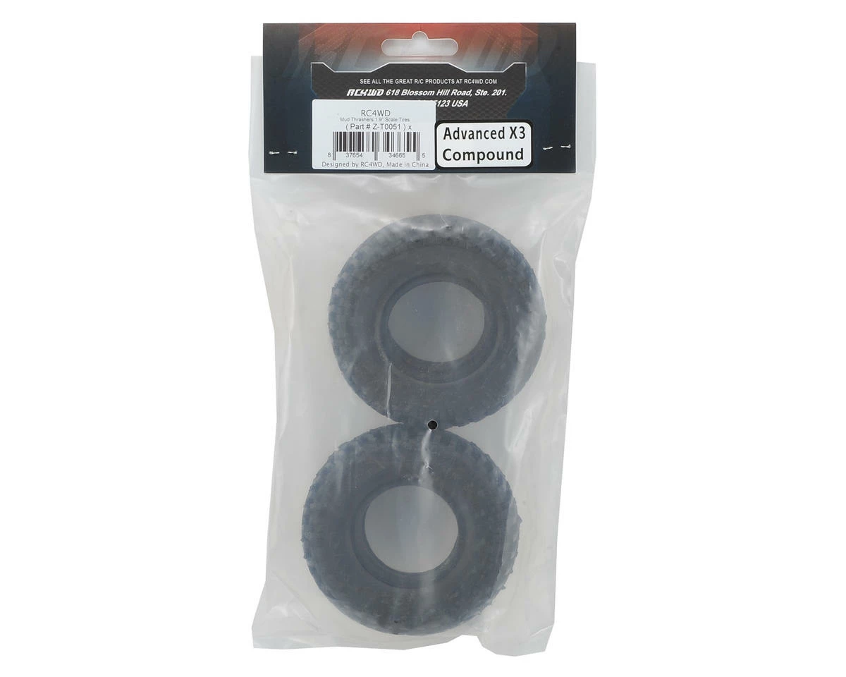 Now with extremely scale thread pattern for your scale build! Mud Thrashers features an aggressive all-terrain optimized symmetric pattern to provide traction and handling. Sidewall traction bars maximize traction action in deep dirt, snow and mud.