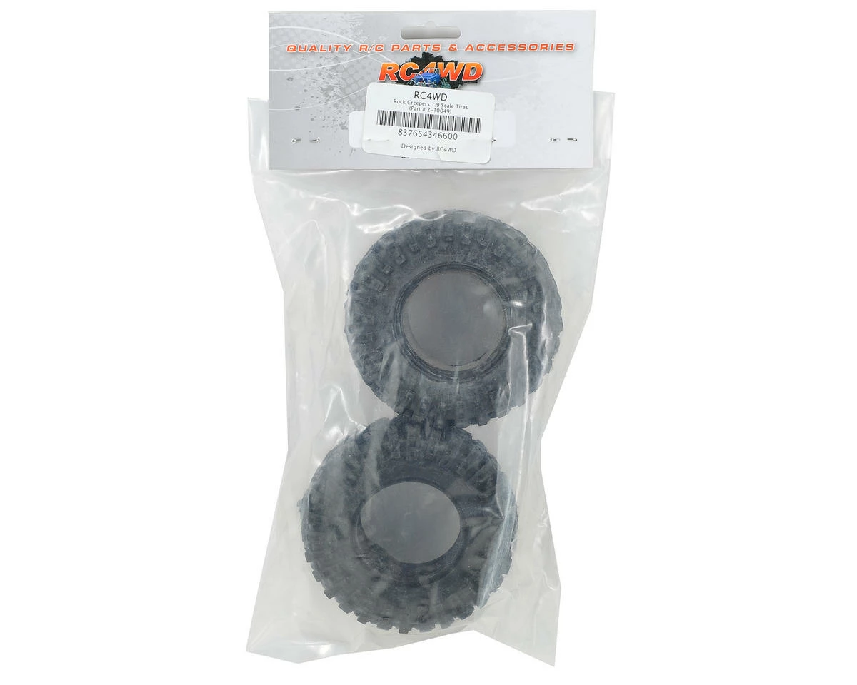 This is a pack of two RC4WD “Rock Creepers” 1.9 Scale Tires. These are the perfect choice for any scale 1.9 rig!