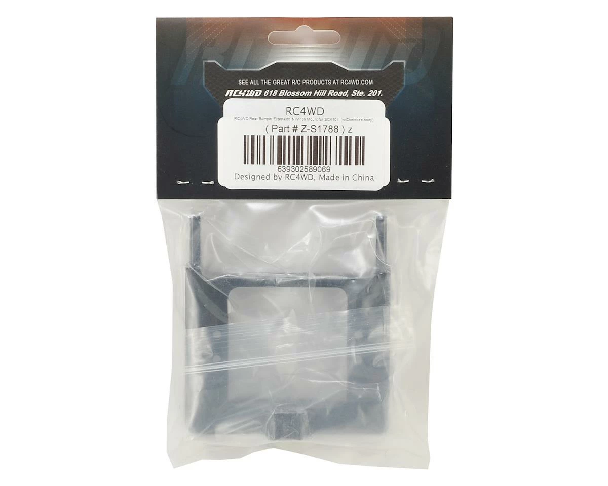 The RC4WD SCX10 II Rear Bumper Extension & Winch Mount bolts into the stock SCX10 frame rails and gives you a solid mounting point for a rear winch, bumper and trailer hitch.