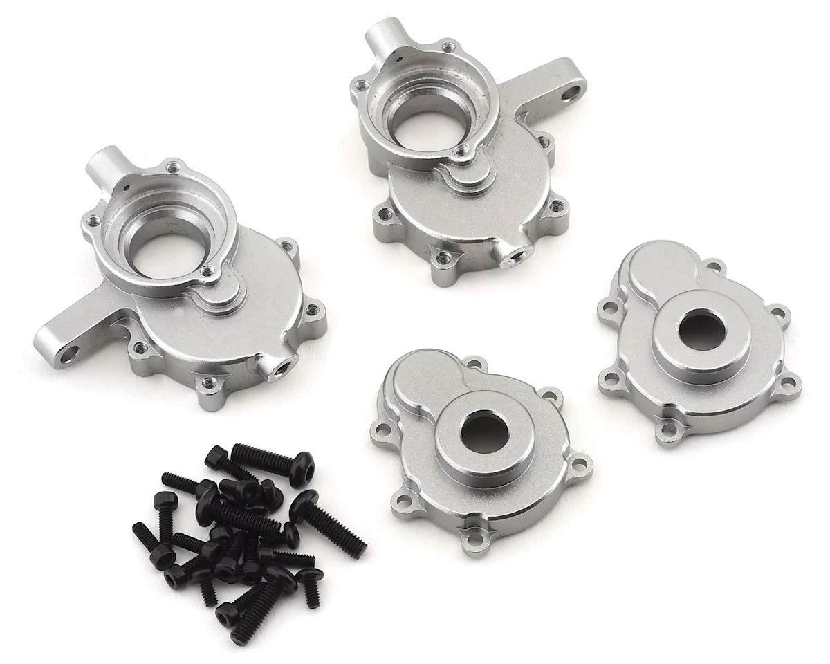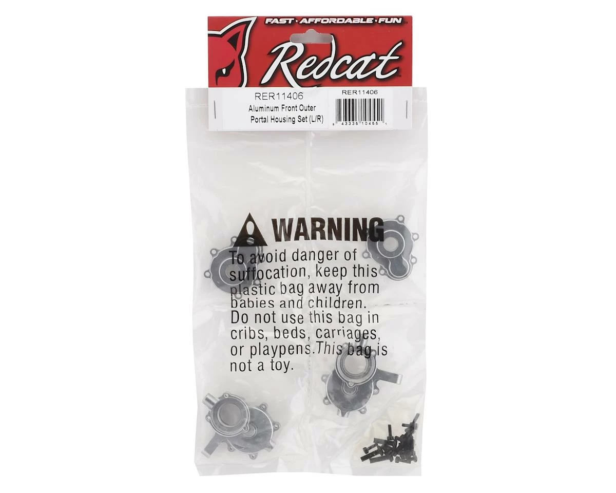 Redcat Gen8 Aluminum Front Portal Knuckle Set. These portal knuckles are an aluminum option for the Redcat Gen8, or any model equipped with Redcat Portal Axles (RER11289). These upgrades will offer improved strength and durability, and will eliminate the flex associated with the stock plastic parts. Plus, these will add approximately 40 grams of unsprung weight to the axle to help increase stability and overall performance. Package includes left and right side portal knuckles, portal knuckle covers and hardware.