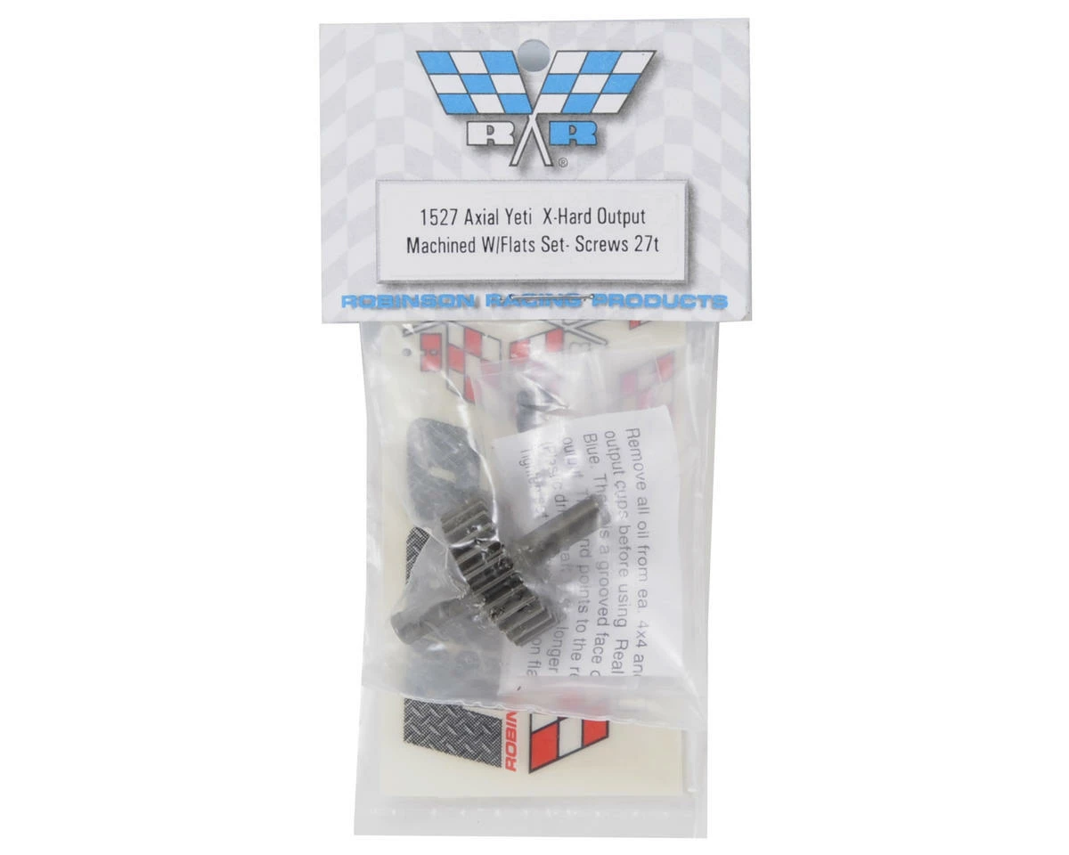 This is an optional Robinson Racing Axial Yeti Extra-Hard 32 Pitch, 27 Tooth Differential Output Gear. This gear has been precision machined, and extra hardened for incredible strength. Strong and tough gear teeth handle all the power you can pour on.