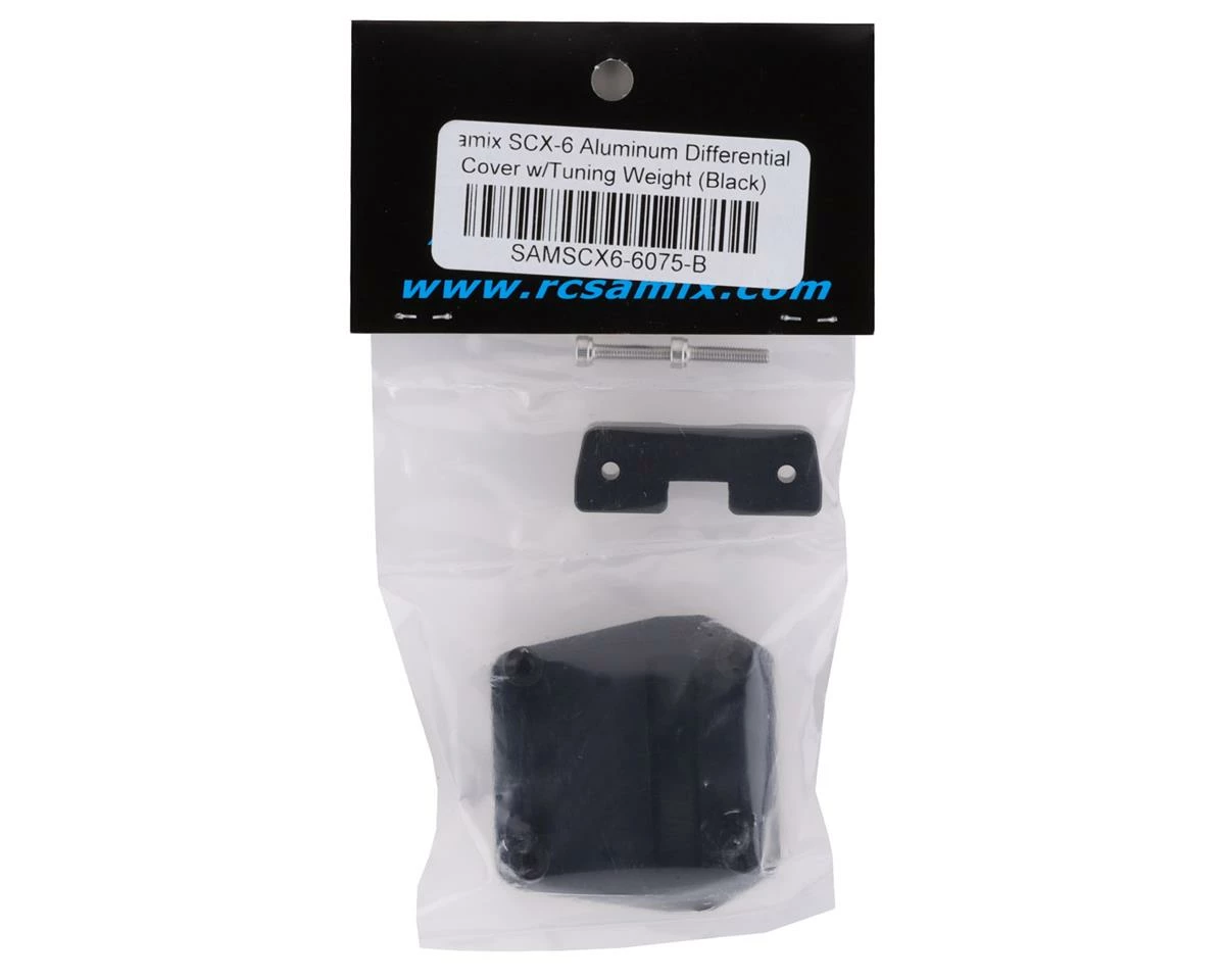 Samix SCX-6 Aluminum Differential Covers are a machined aluminum option that is a direct replacement for the stock plastic diff covers (AXI252002). These diff covers feature a tuning weight that will add a bit of weight to the cover, and the large size of the complete assembly adds a total of 84 grams of weight down low. Plus, they are available in three color options to help add a touch of color to your truck.