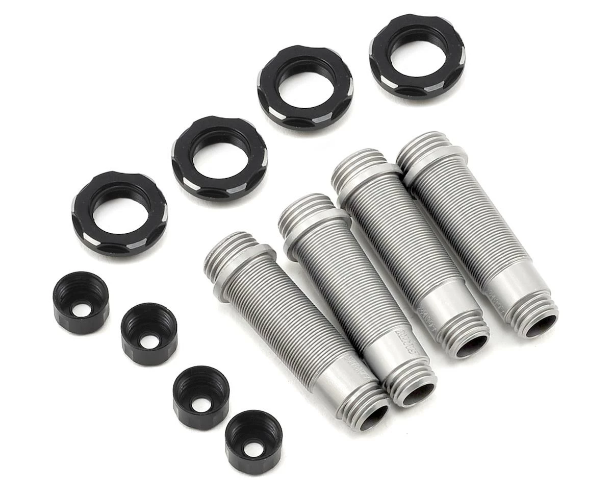 The Samix SCX10 Aluminum Shock Body Set is the perfect upgrade for SCX10 and SCX10 II trucks equipped with the stock shocks. Compatible with the stock SCX10/SCX10 II shock parts, these shock bodies are precision machined and feature a machined aluminum preload collar and lower shock cap to compliment the look. Available with a hard anodized or silver finish with engraved Samix logo, these will give your build a great custom look that cannot be matched by the stock parts. Package includes four silver shock bodies, four black preload collars and four black lower shock caps. To finish off the look, combine these with the Samix Shock Reservoir (SAMSCX-6041 – not included).