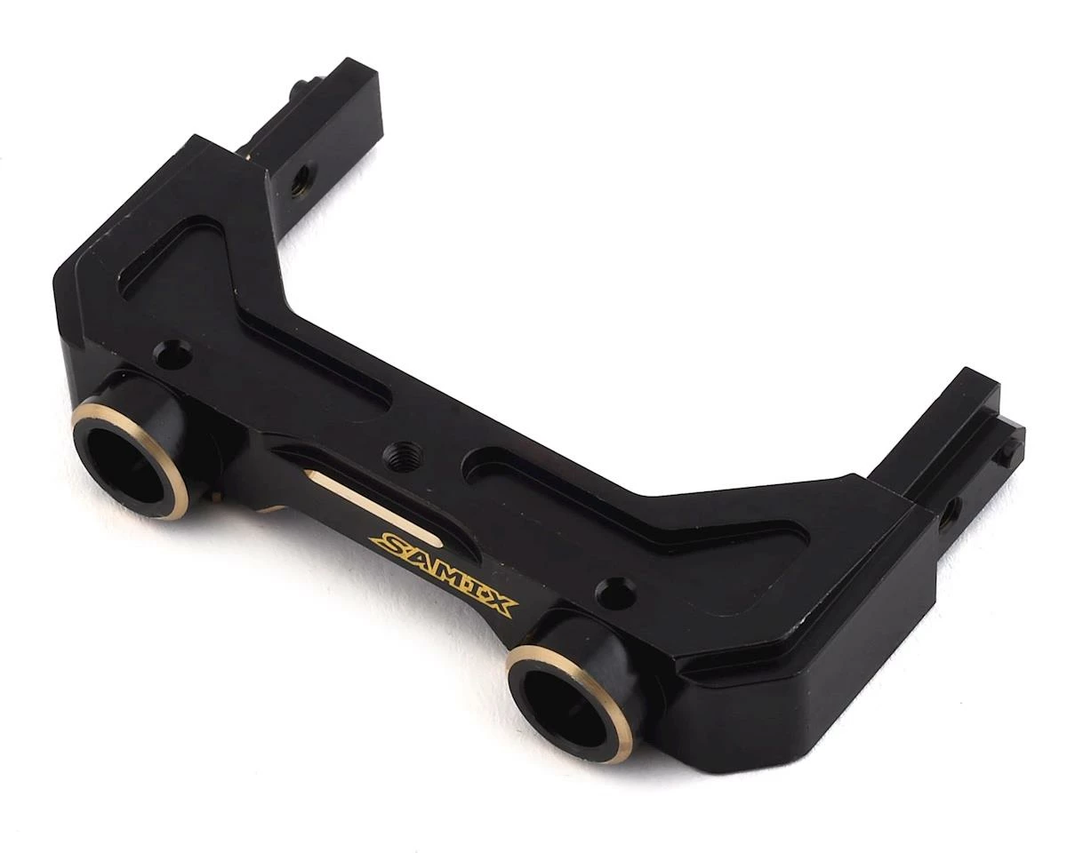 The Samix SCX10 II Brass Rear Bumper Mount is precision machined to fit the chassis rails perfectly and add more strength to the rear bumper mount. The brass material adds 101 grams of weight, while the black finish with gold chamfered edges and Samix logo adds a touch of bling to the custom part.