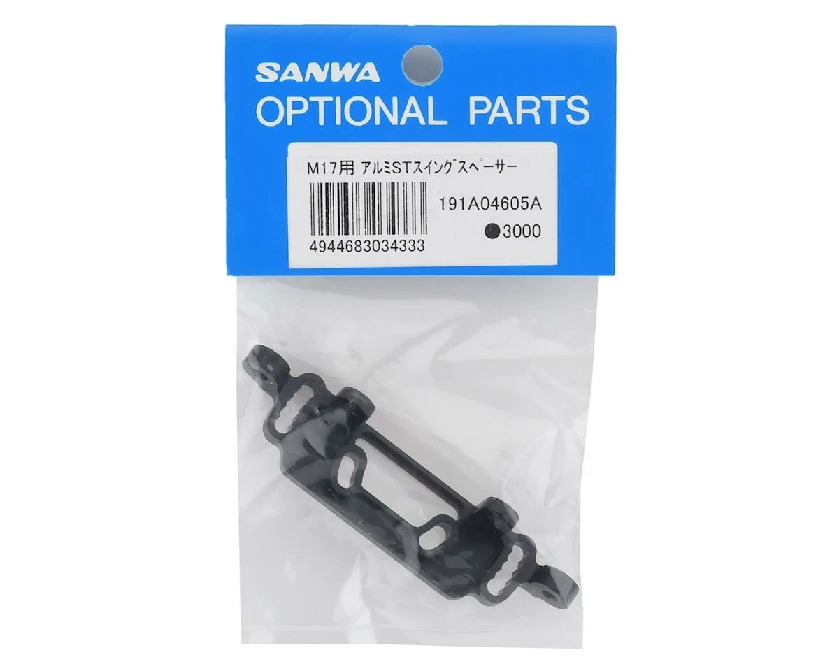 This is an optional Sanwa/Airtronics M17 Aluminum Steering Spacer, intended for use with the M17 FH5 4-Channel 2.4GHz Radio System. The steering spacer allows the driver to access two extra steering wheel positions. This part is made of quality aluminum alloy and is black anodized with machined silver edges for a clean and sharp appearance.