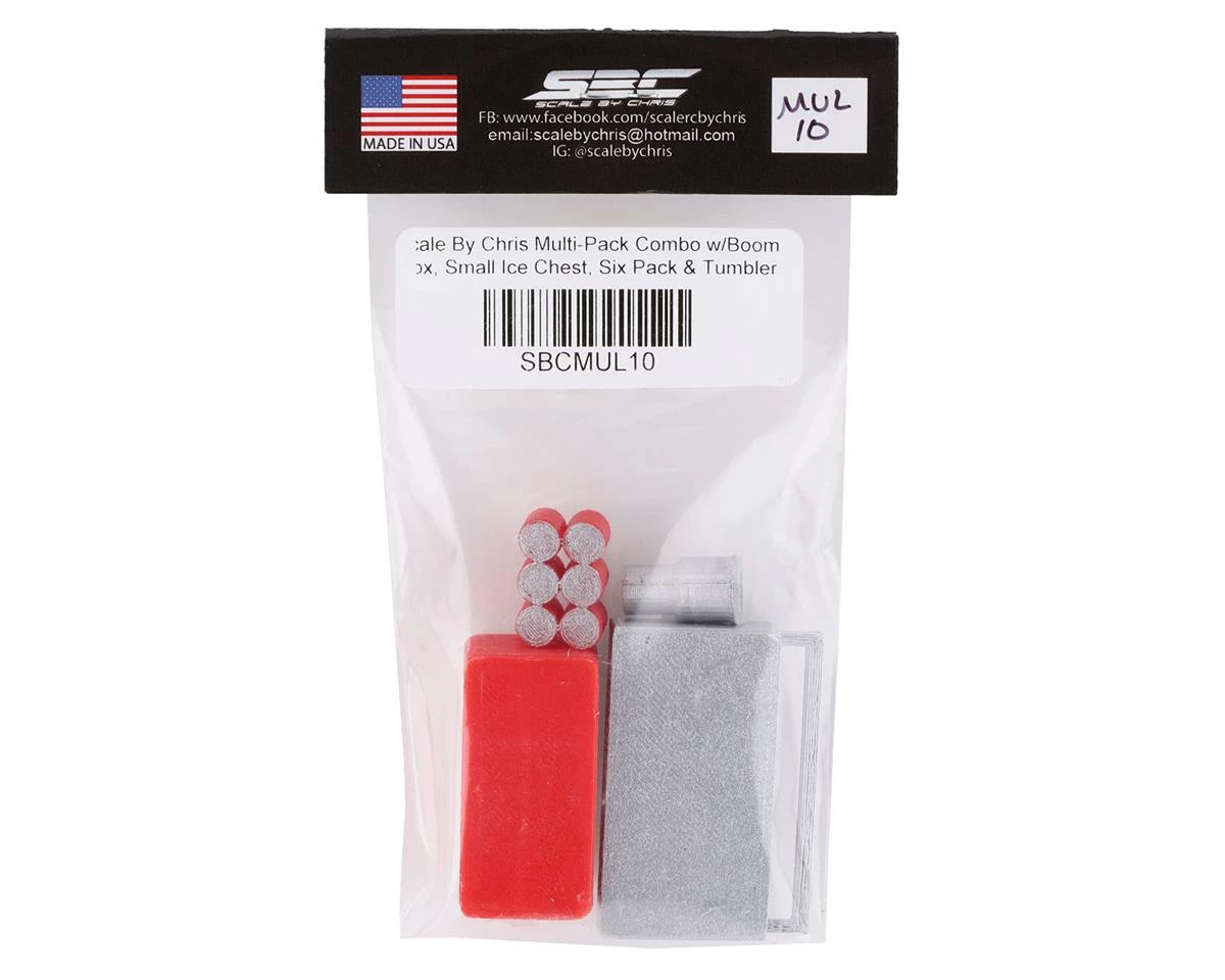 The Scale By Chris SBC Multi-Pack Combo 10 includes the SBC Boom Box, Small Ice Chest, Six Pack & Tumbler, making it easy to add details to your custom build. These parts are 3D printed miniaturized replicas that add style to your scale build and are a great way to increase the level of scale details in your shop, or rig. Plus, by buying these items in a combo, you save a few bucks compared to buying all the items separately!