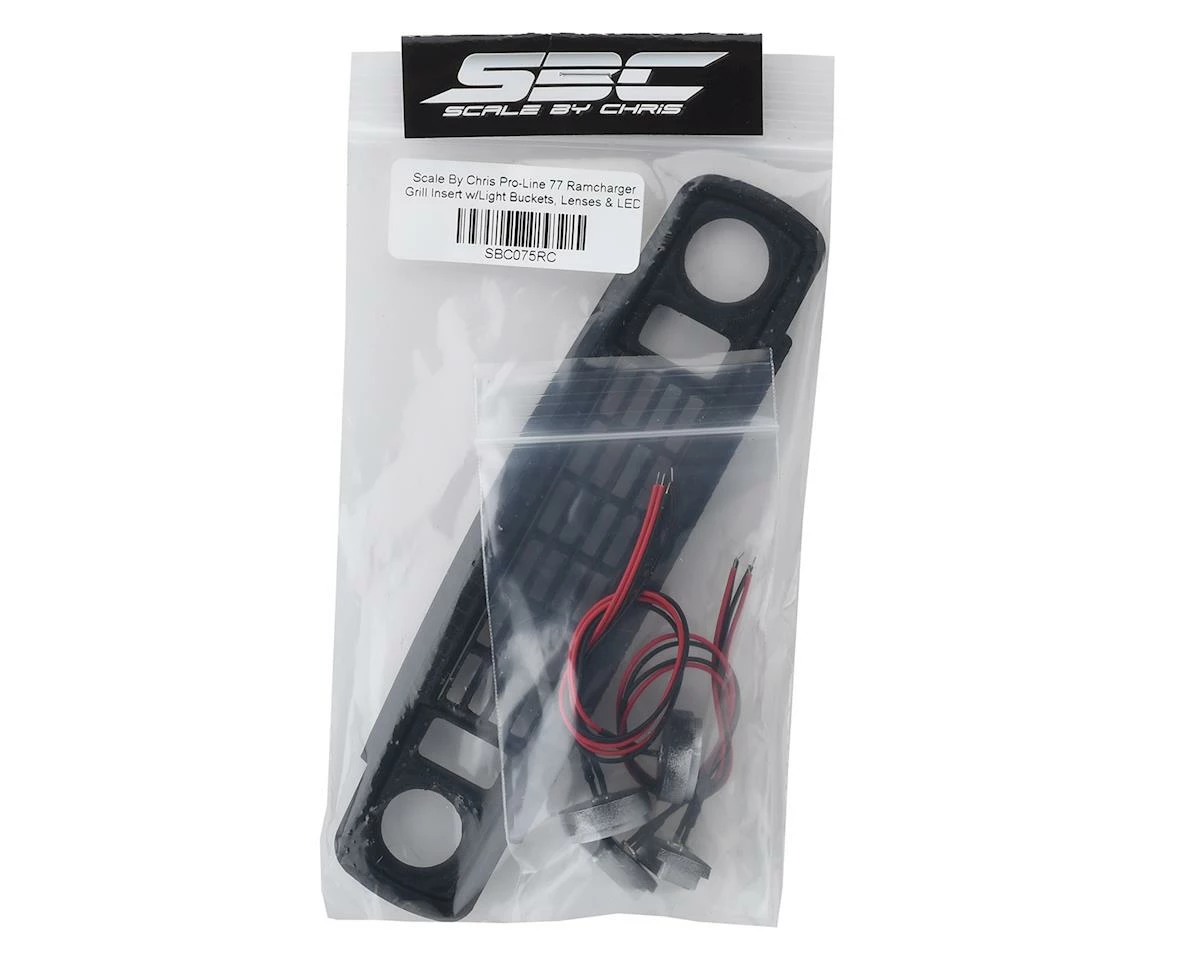 The Scale By Chris Pro-Line 77 Ramcharger Grill Insert kit is a 3D printed miniaturized replica that adds that perfect finishing touch to your Pro-Line 1977 Dodge Ramcharger body (PRO3525-00). This grill features silver light buckets with pre-installed 12V 5mm led lights that are open ended, allowing you to install the connector you prefer. Plus, the kit includes a 3D printed clear lenses to install over the top of the light buckets for a greater level of realism.