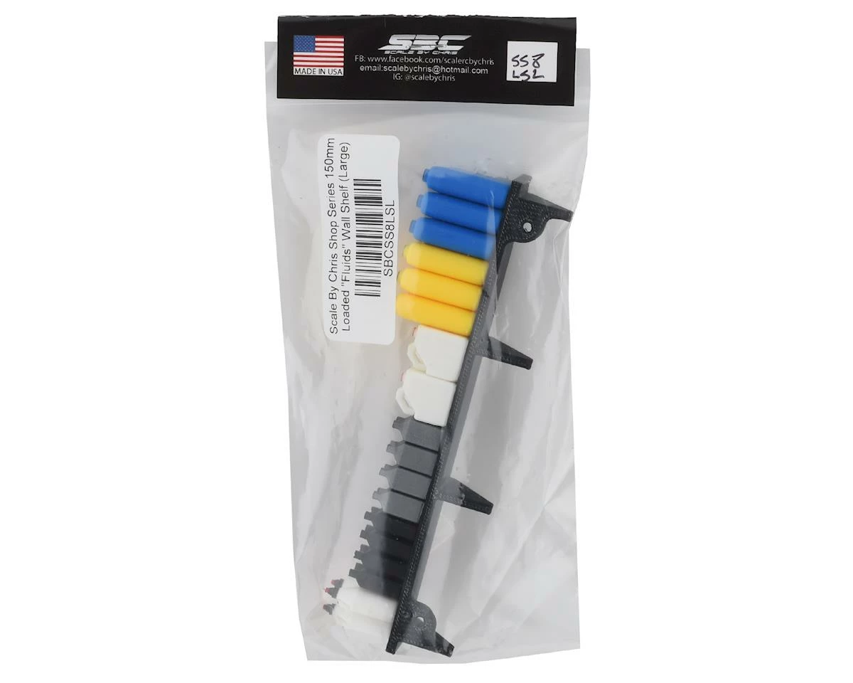 The Scale by Chris Scale Shop Series 150mm Loaded “Fluids” Wall Shelf is a great way to add details to your scale shop. This shelf measures approximately 150mm wide by 25mm deep, and is packed with 3D printed bottles that replicate the essential fluids found in any 1:1 shop. The shelf is secured to the surface you choose using your M3 hardware. This shelf s the perfect you accessory for anyone looking to add a realistic finishing touch to their scale diorama.