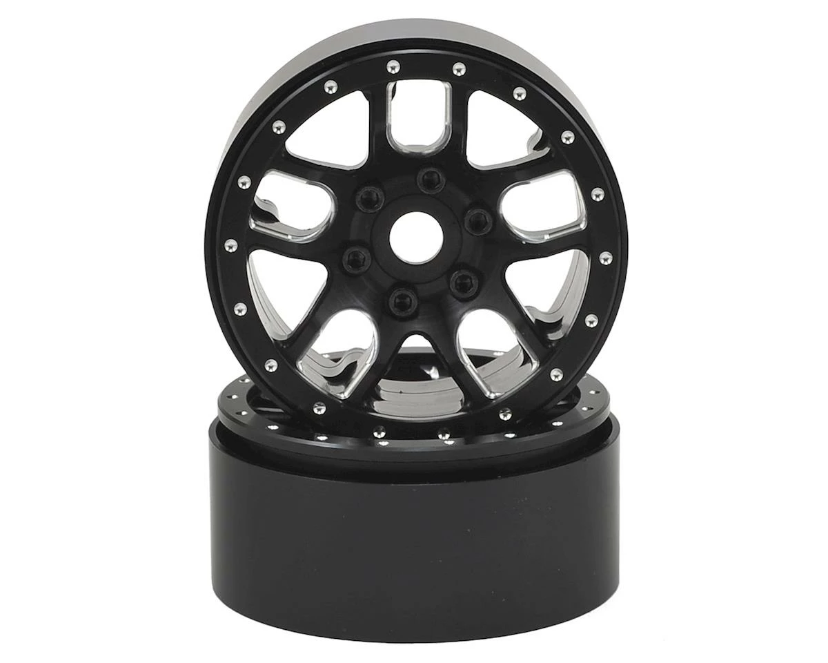 SSD 1.9″ Double Time Beadlock Wheels offer a realistic looking spoke pattern that makes them lightweight at 58 grams each. The 3-piece internal beadlock wheel design allows easy tire mounting. Plus, the hubs are removable and the wheels are compatible with Vanquish SLW wheel hubs for tuning the track width.
