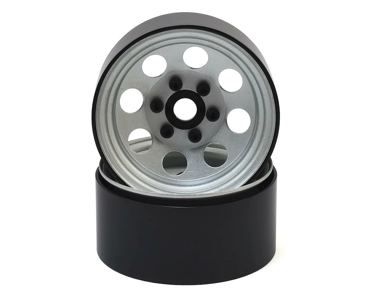 SSD 8 Hole 1.9″ Steel Beadlock Wheels feature a silver finish and machined aluminum 12mm hubs, combined with an internal beadlock design to create a great looking scale replica of the classic 8-hole style wheel at an affordable price.