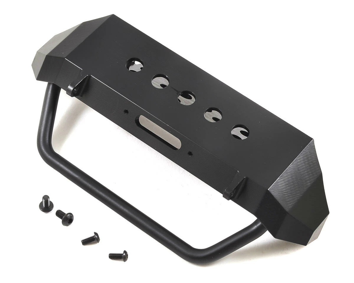 The SSD SCX10 Rock Shield Front Bumper is a machined aluminum bumper, with a steel top bar. It features a removable bumper mount that is a direct fit on the SCX10 chassis, and is superior to the mounts found on other bumpers. Additionally, the bumper is compatible with scale accessories from RC4WD, 3Racing and Axial, so you have more options for things like winches, d-rings and fairleads.