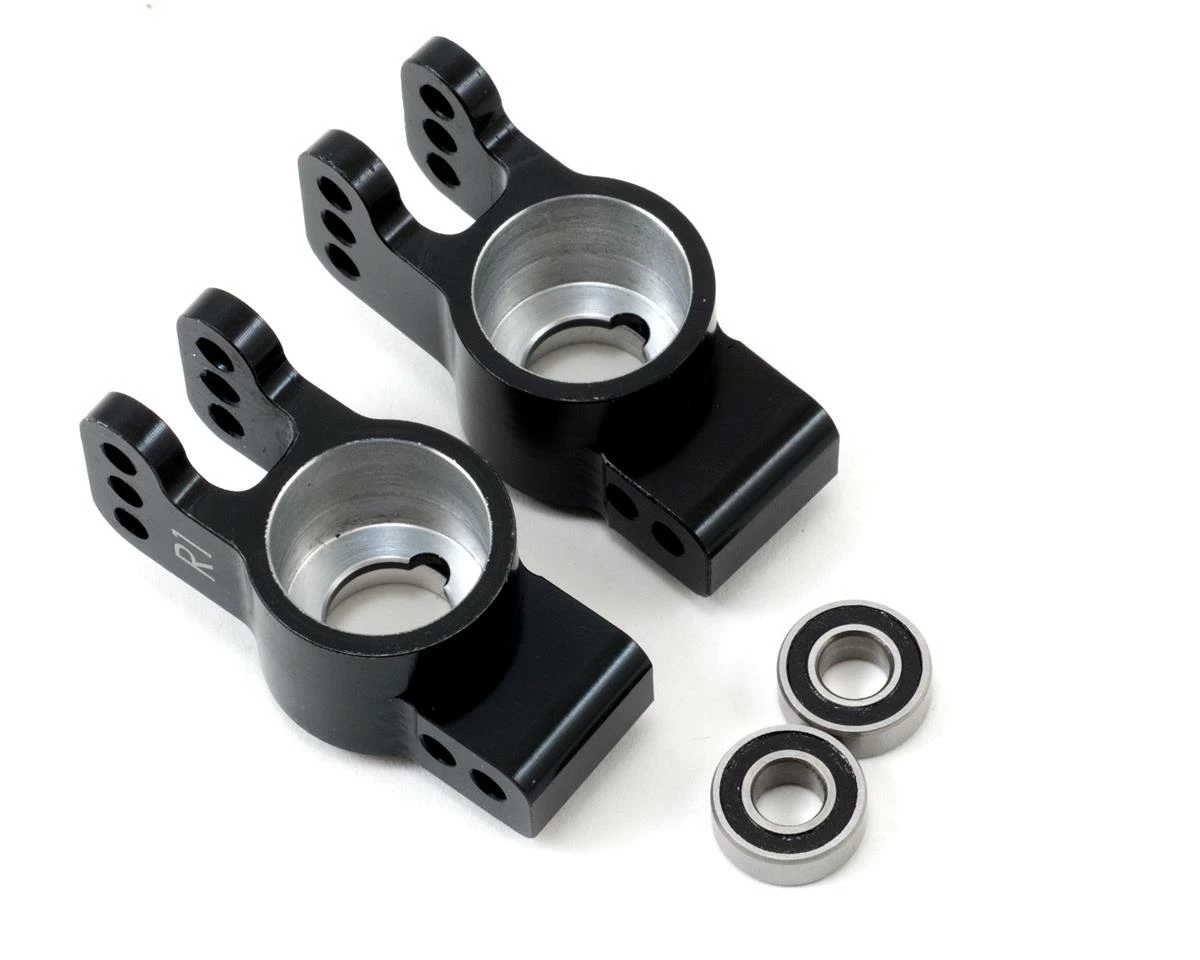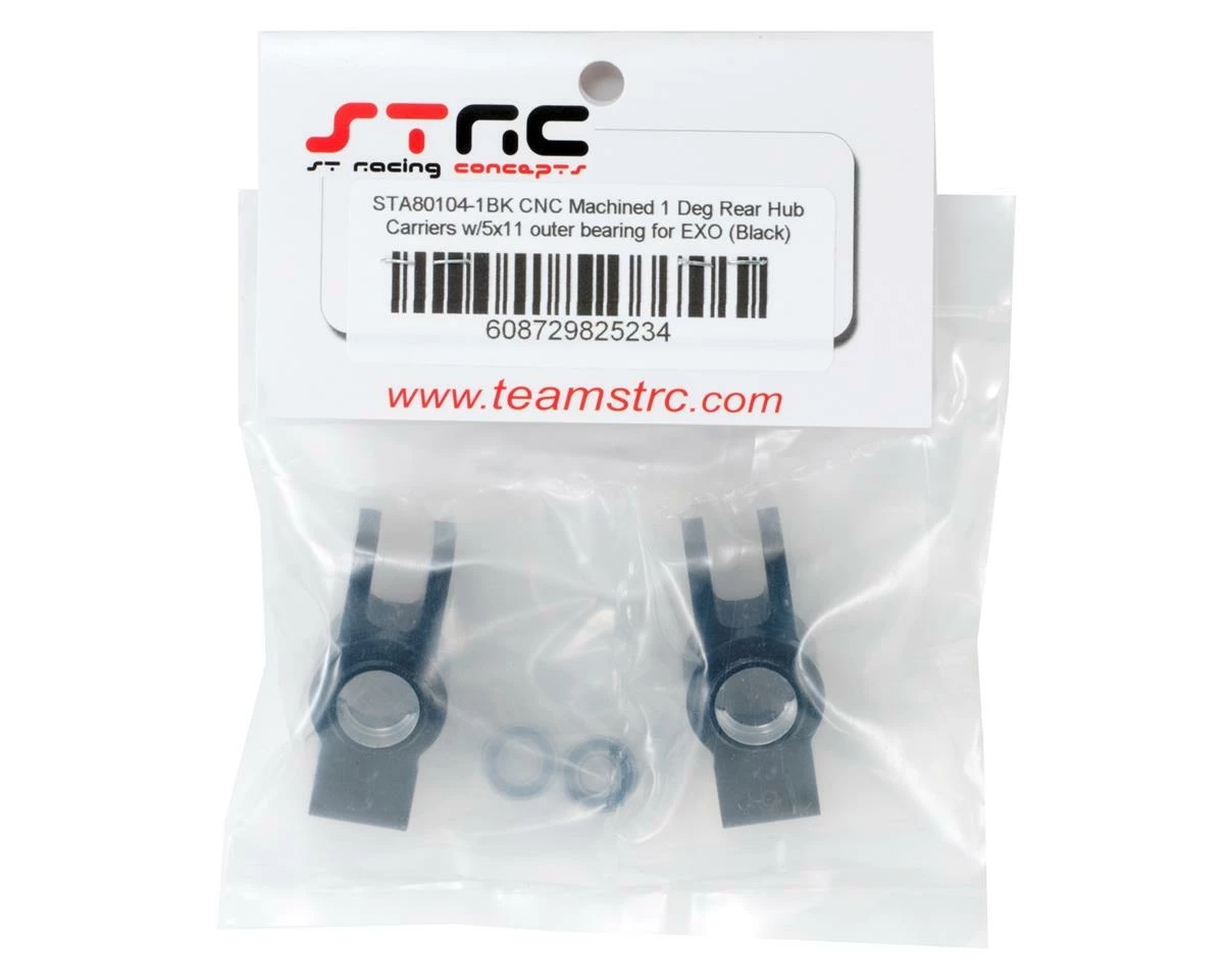 This is an optional ST Racing Concepts CNC Machined 1° Rear Hub Carrier Set with included 5x11mm bearings, and is intended for use with the Axial EXO Terra buggy. These Rear Hub Carriers use larger 5x11mm outer bearings (stock size is 5x10mm) increasing the durability and strength of your outer suspension components. Also, with 1 deg. of outboard toe-in, these hub carriers are ideal for loose running conditions providing more rear traction for your EXO Buggy.