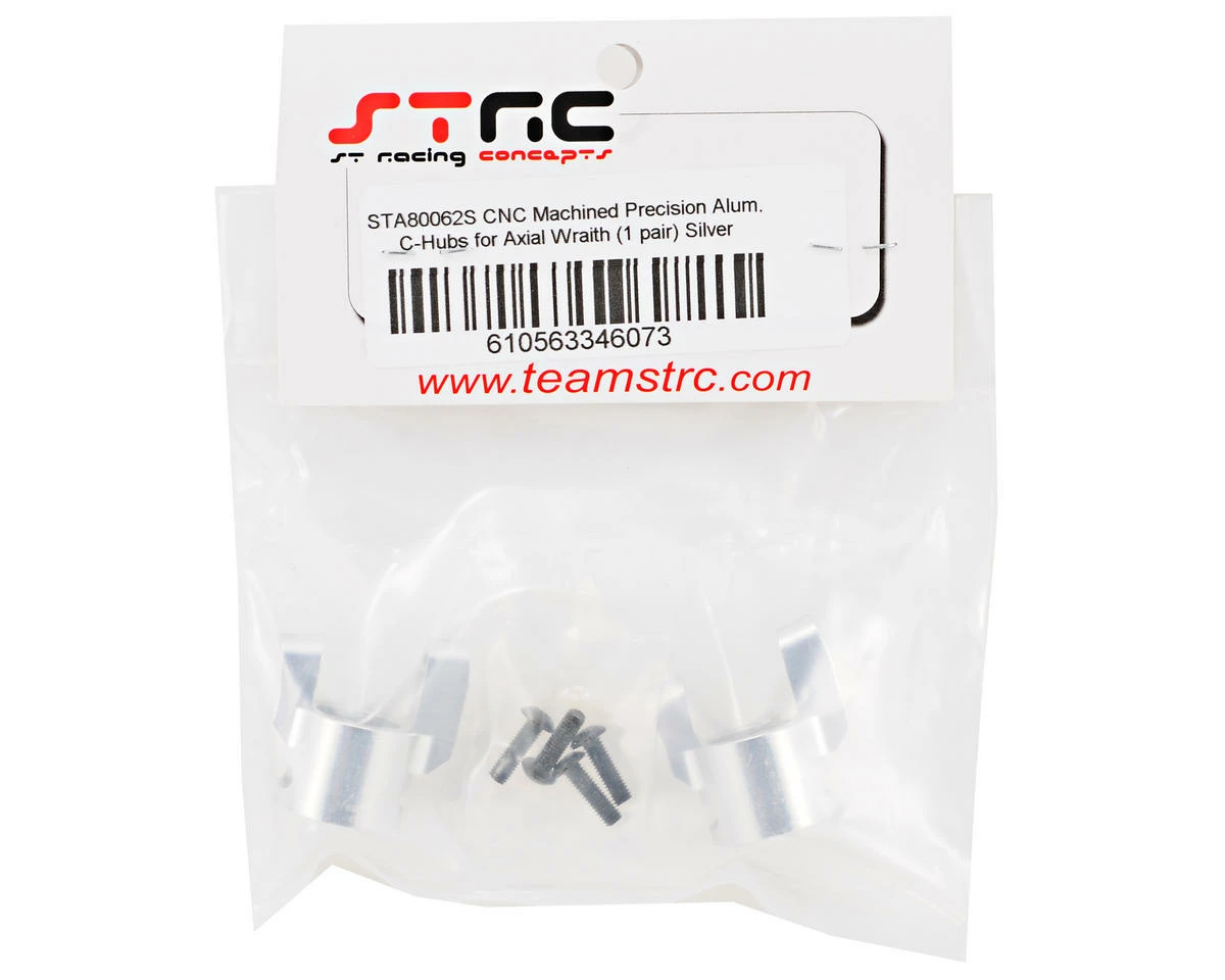This is an optional ST Racing Concepts CNC Machined Precision Aluminum C-Hub Set, and is intended for use with the Axial Wraith. These CNC Machined Aluminum C-Hubs greatly improve the durability on your Axial Wraith, and improves the steering response by taking out any flex that is found with the stock plastic unit. The C-Hubs also have the same dimensions and adjustability as the stock plastic parts.