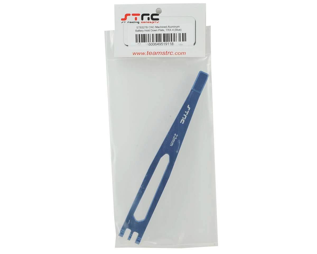 This is an optional ST Racing Concepts Aluminum TRX-4 Battery Hold Down Plate. This center CNC machined aluminum battery plate helps dissipate heat from your battery pack and also add a bit more overall weight at the center of the TRX-4.