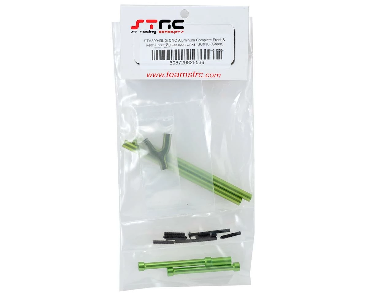 This is an optional ST Racing Concepts SCX10 CNC Machined Aluminum Front & Rear Upper Suspension Link Set. These CNC machined links eliminate the link flex that occurs with the stock links and deliver improved durability and performance.