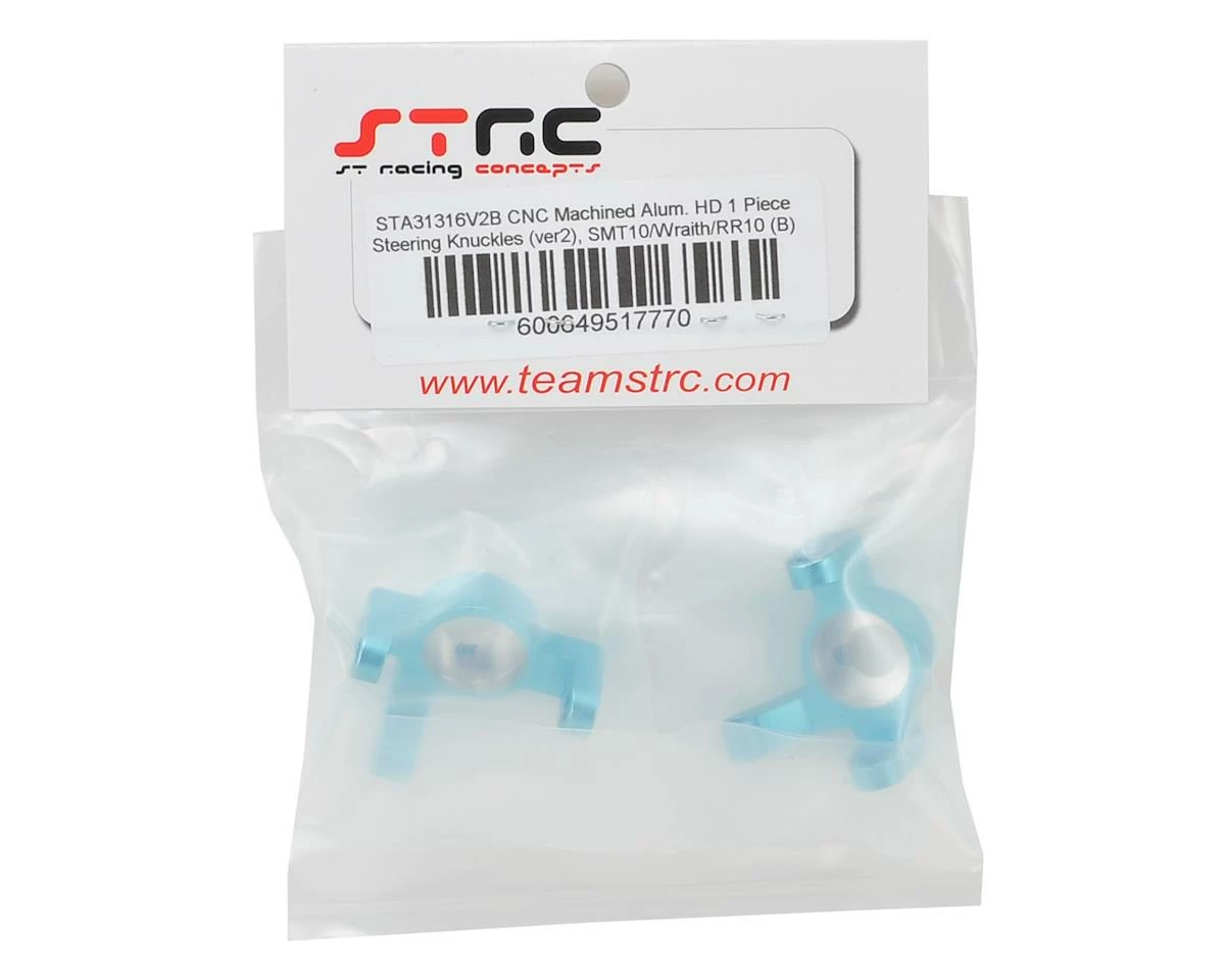 The STRC Wraith/RR10 Aluminum V2 Steering Knuckle Set features a new 1 piece design that works with Axial RR10 Bomber, Wraith, AX10 Deadbolt, and SMT10 trucks. CNC Machined from high quality aluminum and available in a variety of colors, these knuckles help to increase durability and steering precision on your Axial rig. Combine these with a solid steering link kit and you will get maximum steering power out of your servo.
