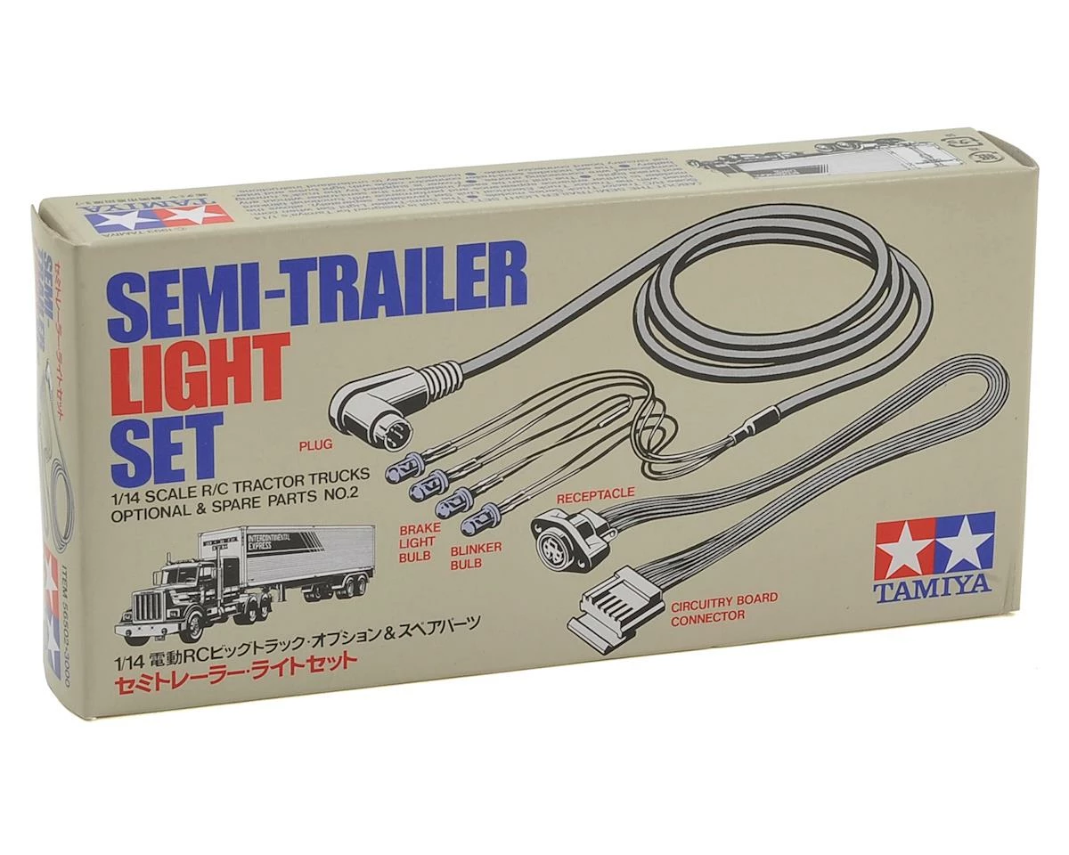The Tamiya Semi-Trailer Light Set when combined with the Tractor Truck Electrical Unit Set or Multi-Function unit, allows the modeler to further enhance appearance and performance with functional blinkers and brake lights. The unit can be easily installed on the semi-trailer without any complicated wire connecting chores. Power is supplied by the truck’s running battery. The set includes semi-trailer connector cable with light bulbs and internal circuitry board connector cable. Includes easy to understand instructions.