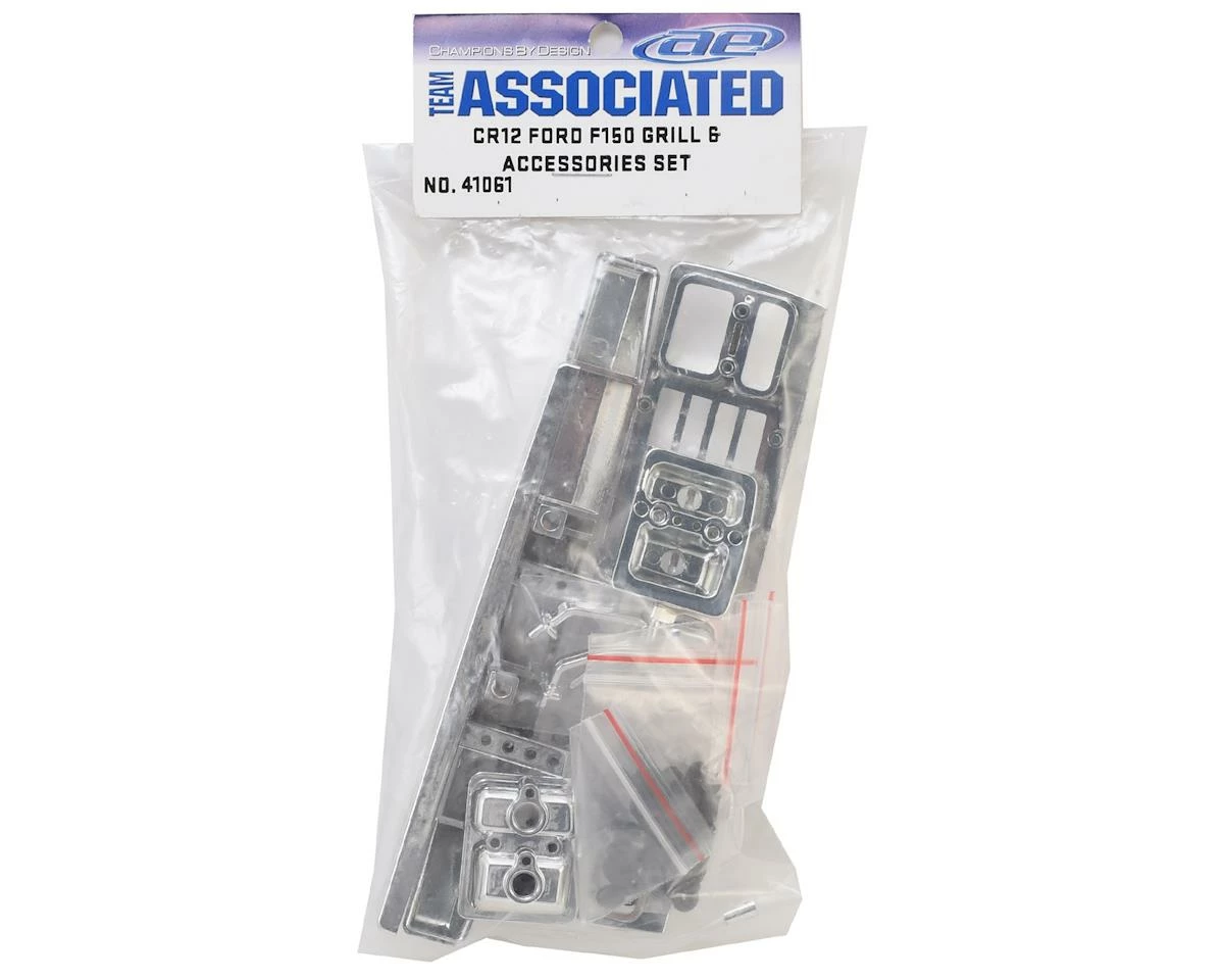 This is a replacement Team Associated Ford F-150 Grill and Accessories Set for the CR12 Crawler. This set includes the front and rear bumpers, light pods, mirrors and door handles, as well as mounting hardware.