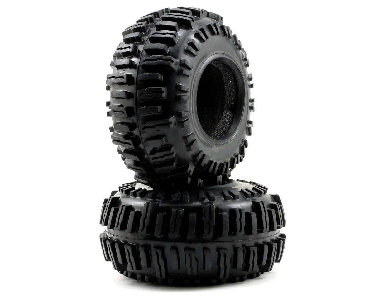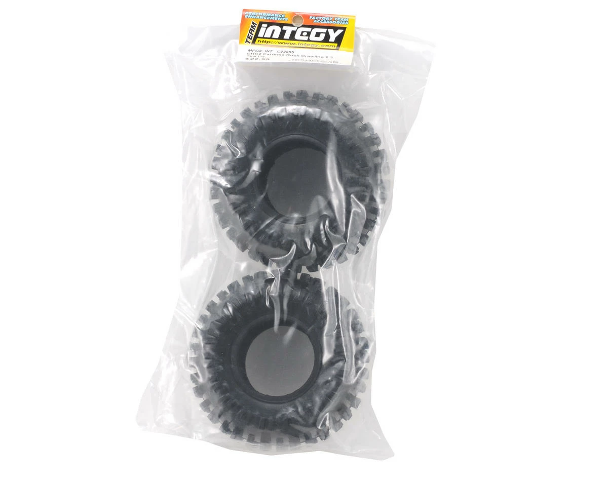 Integy ERC2 Extreme 2.2 Rock Crawler Tires. These tires are similar to a Bogger style tire, and feature a 125mm outer diameter. Package includes two tires and foam inserts.