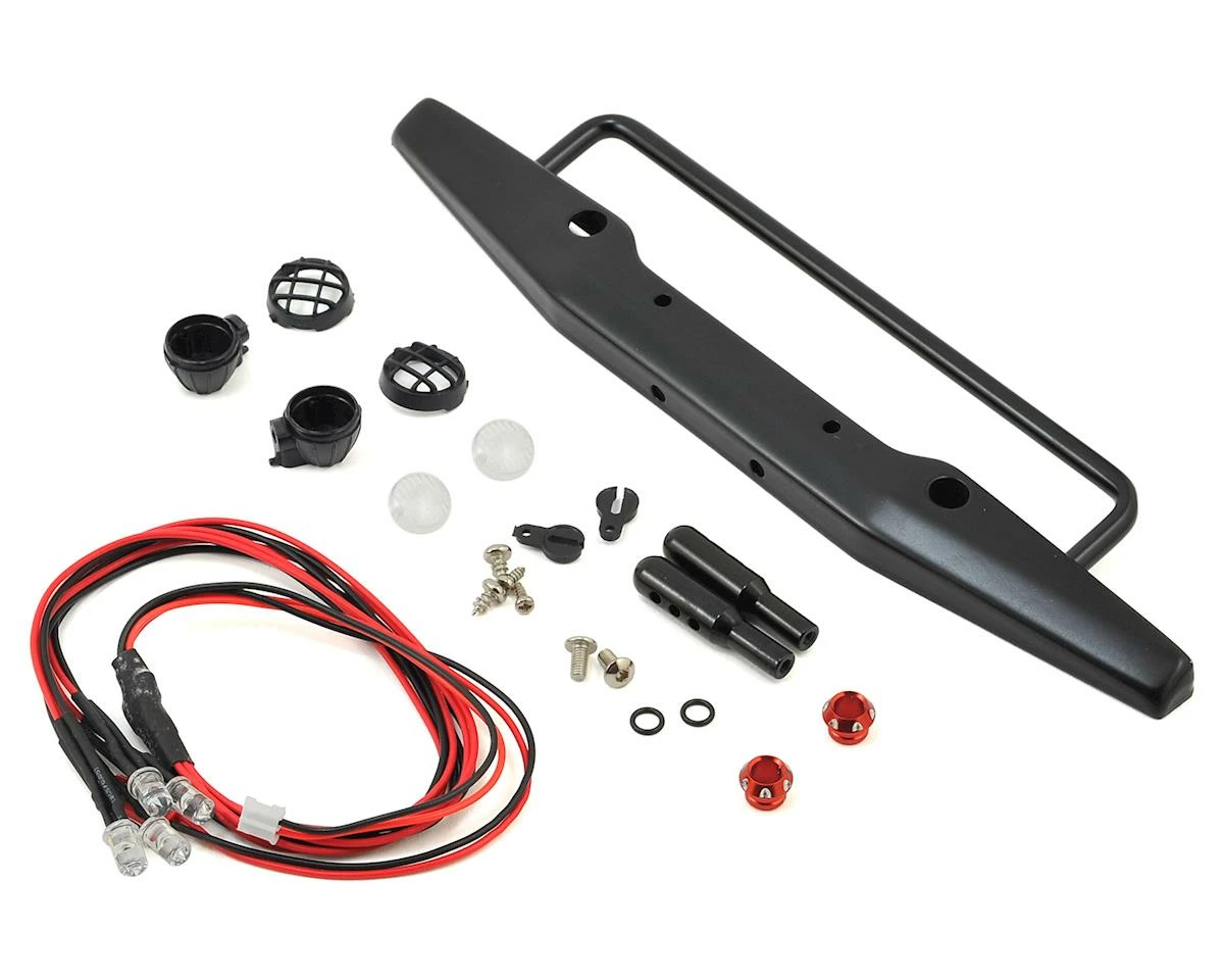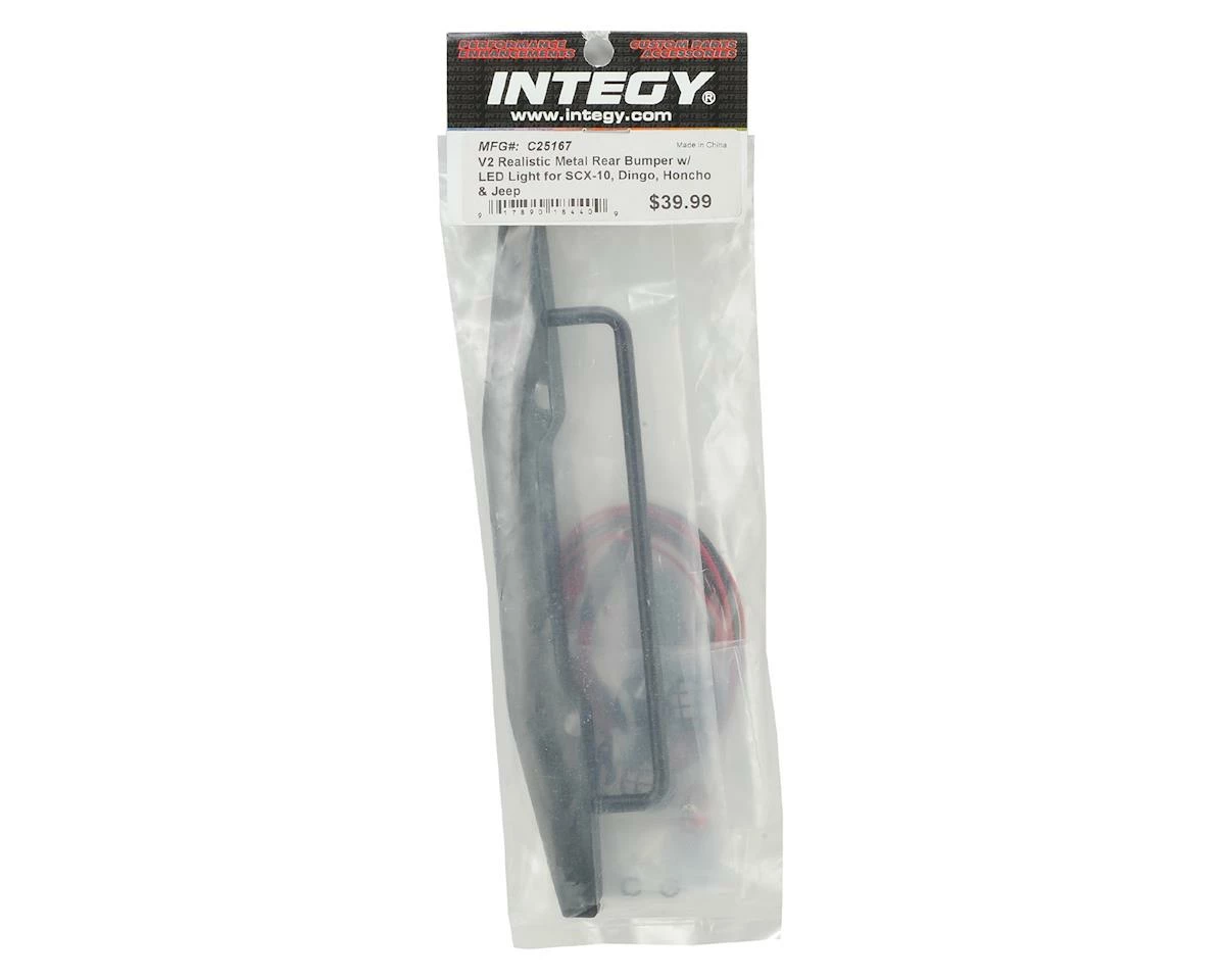 This is the Team Integy Realistic Metal Rear Bumper for the SCX10 and similar platforms. This bumper metal bumper features light pods and includes functional LED lights.