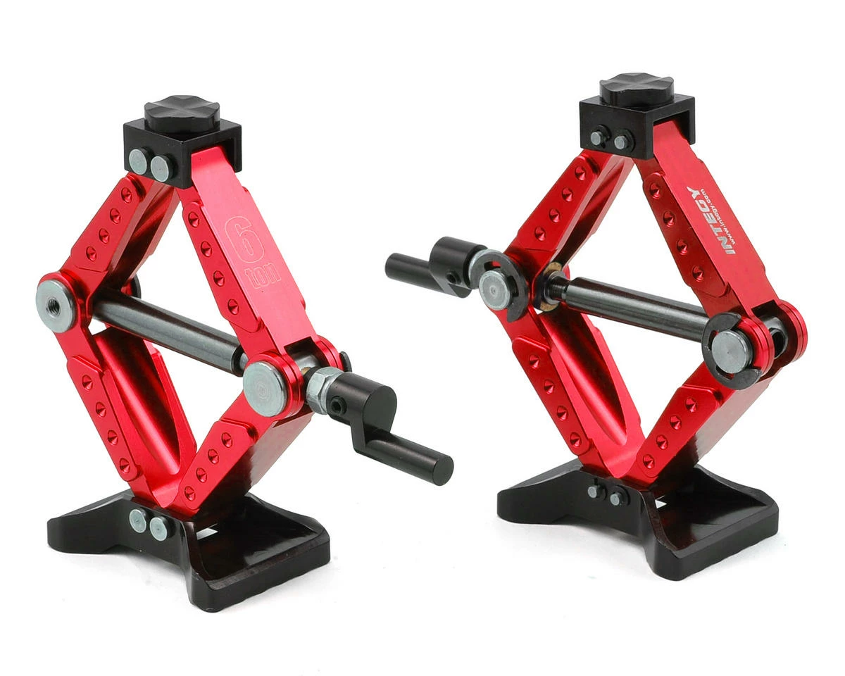 The Integy Scissor Jack will allow you to add some scale realism to your scale shop. These fully functional Heavy-Duty 1/10-scale Scissor Jacks have a solid base to support your rig, and feature a built-in crank with metal joints, and anodized arms. The scissor jacks are available in a variety of anodized finishes and are sold in pairs.