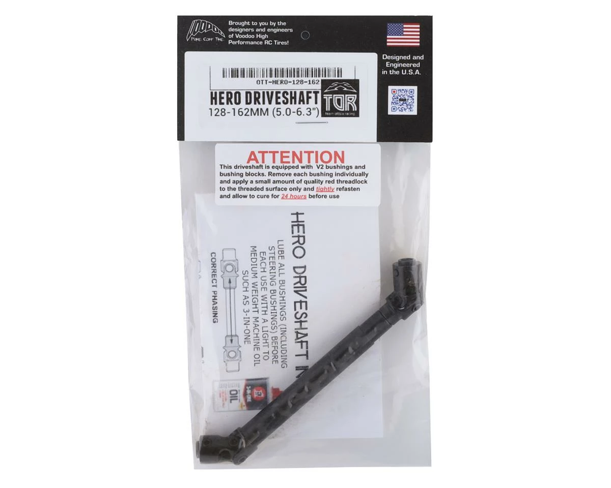 Team Ottsix Hero V2 128-162mm Driveshaft. The Ottsix Hero driveshaft system is unique in that the coupler uses replaceable stainless steel bushings (OTT-HERO-SSBUSH). This allows the driveshaft to provide a longer service life thanks to its rebuildable design.