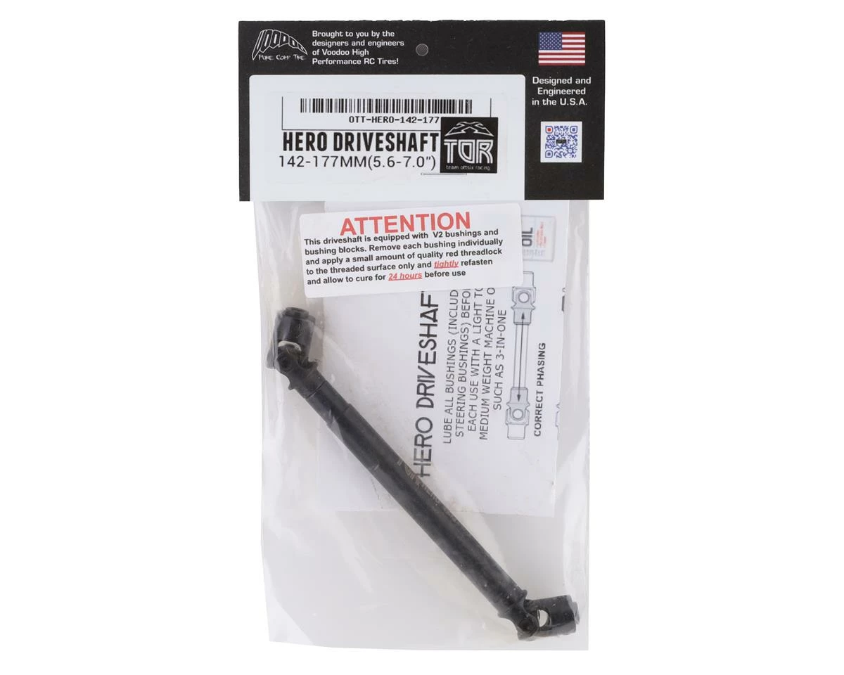 Team Ottsix Hero V2 142-177mm Driveshaft. The Ottsix Hero driveshaft system is unique in that the coupler uses replaceable stainless steel bushings (OTT-HERO-SSBUSH). This allows the driveshaft to provide a longer service life thanks to its rebuildable design.