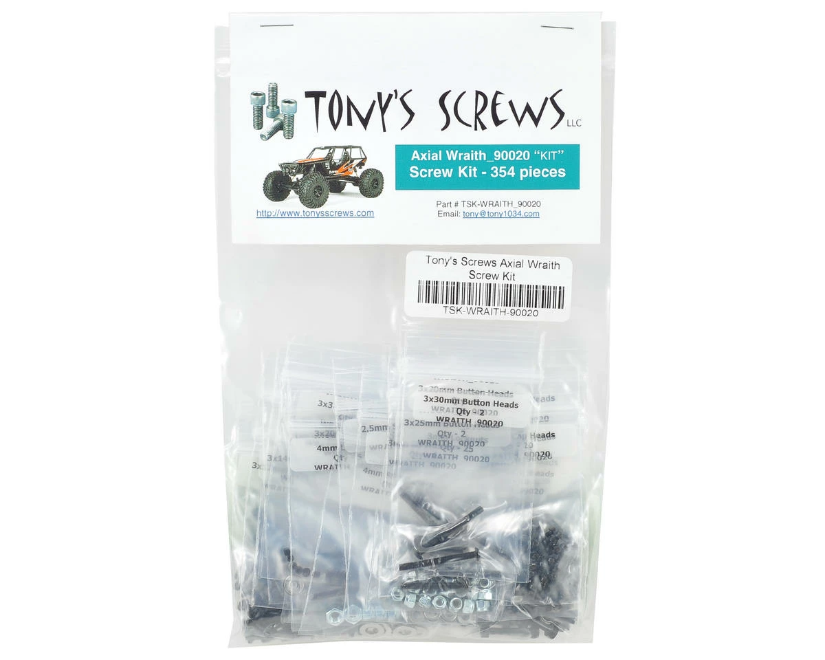 This is an optional Tony’s Screws Axial Wraith Screw Kit. This 354 piece high grade alloy steel socket head screw kit includes all applicable cap, flat and button head screws, as well as nuts, washers and set screws.