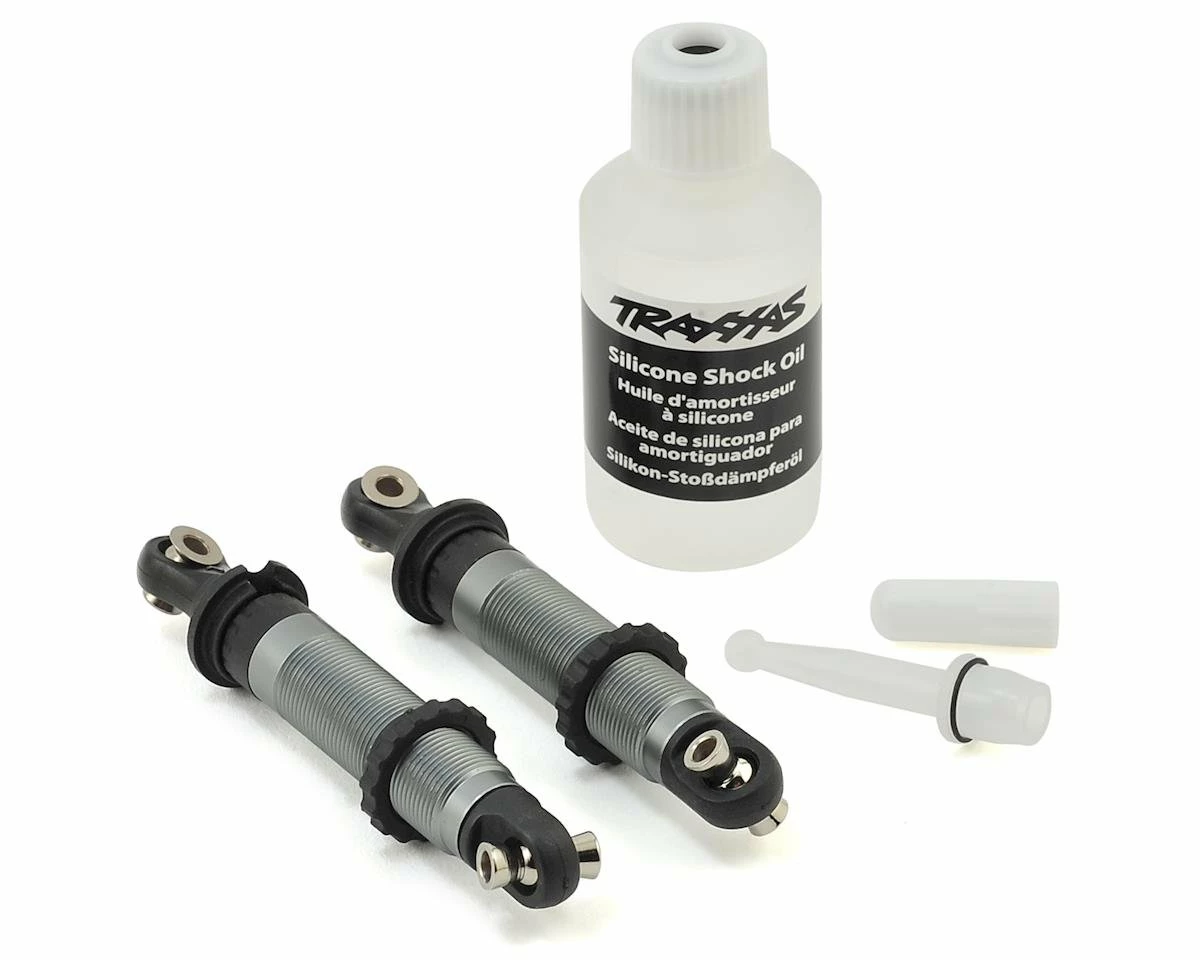 Traxxas TRX-4 Aluminum GTS Shocks are the replacement shock for the TRX-4, but are also a great scale option for a variety of scale builds! The shock features an 11mm diameter shock body, and is approximately 90mm long at full extension and 65mm long when compressed, delivering 25mm of travel! Package includes two factory assembled shocks and a bottle of unspecified weight shock fluid. Shock springs not included (stock springs are TRA8040 – rear, TRA8041 – front).