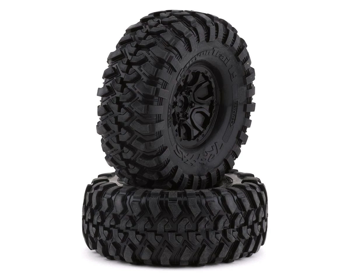 Traxxas TRX-4 Pre-Mounted Canyon Trail 1.9″ Crawler Tires. These replacement pre-mounted tires are intended for the Traxxas TRX-4 equipped with the 2021 Ford Bronco body, however, they will also work with other TRX-4 models. Package includes two pre-mounted tires.