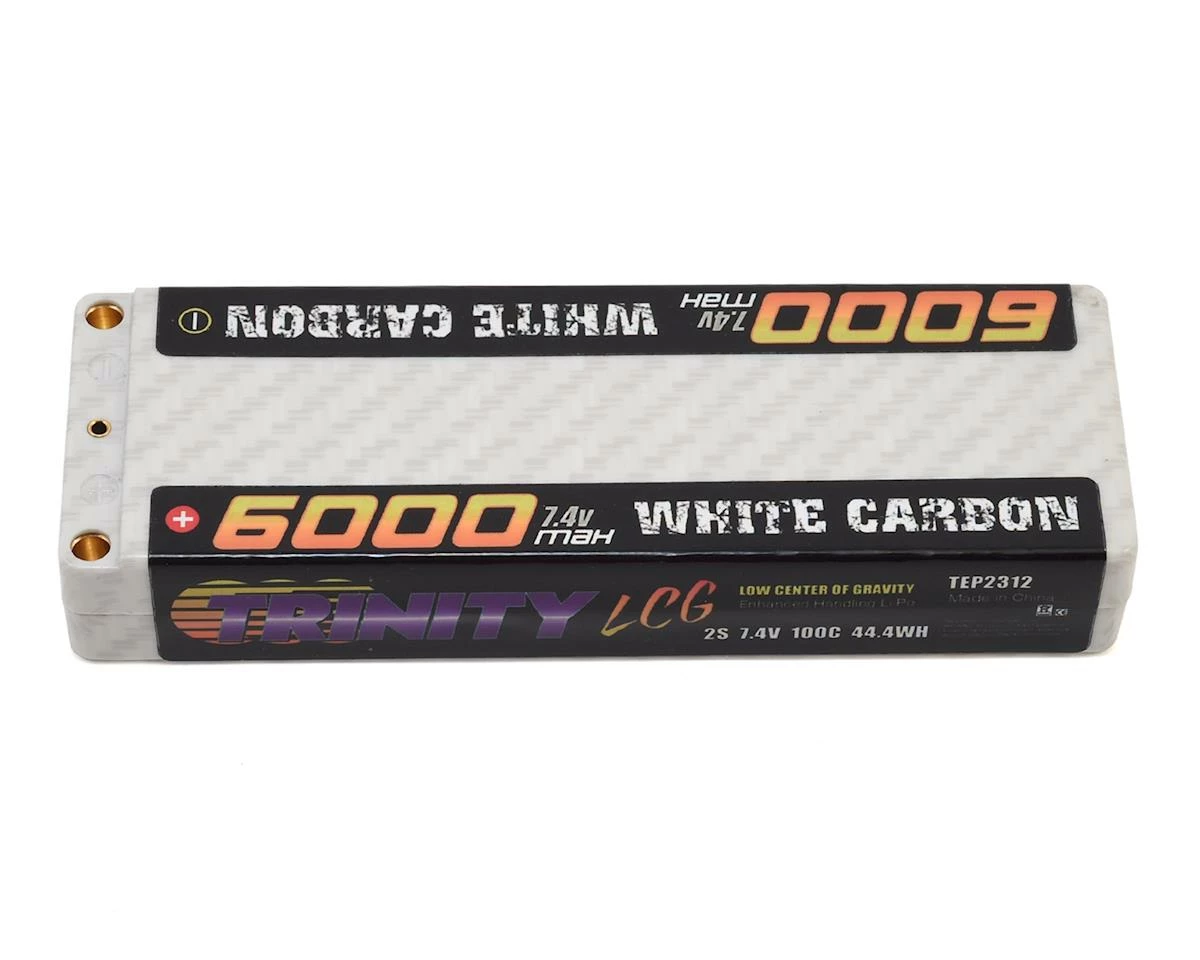The “LCG” Low Center of Gravity pack was designed with specifications directly from the “World’s Fastest” SPEC and Modified class racers. White Carbon LiPo’s are the very best packs that Trinity could develop to wear the Trinity name. Several configurations of White Carbon packs are available including the LCG (Low Center of Gravity), HV (High Voltage) and HC (High Capacity) models.