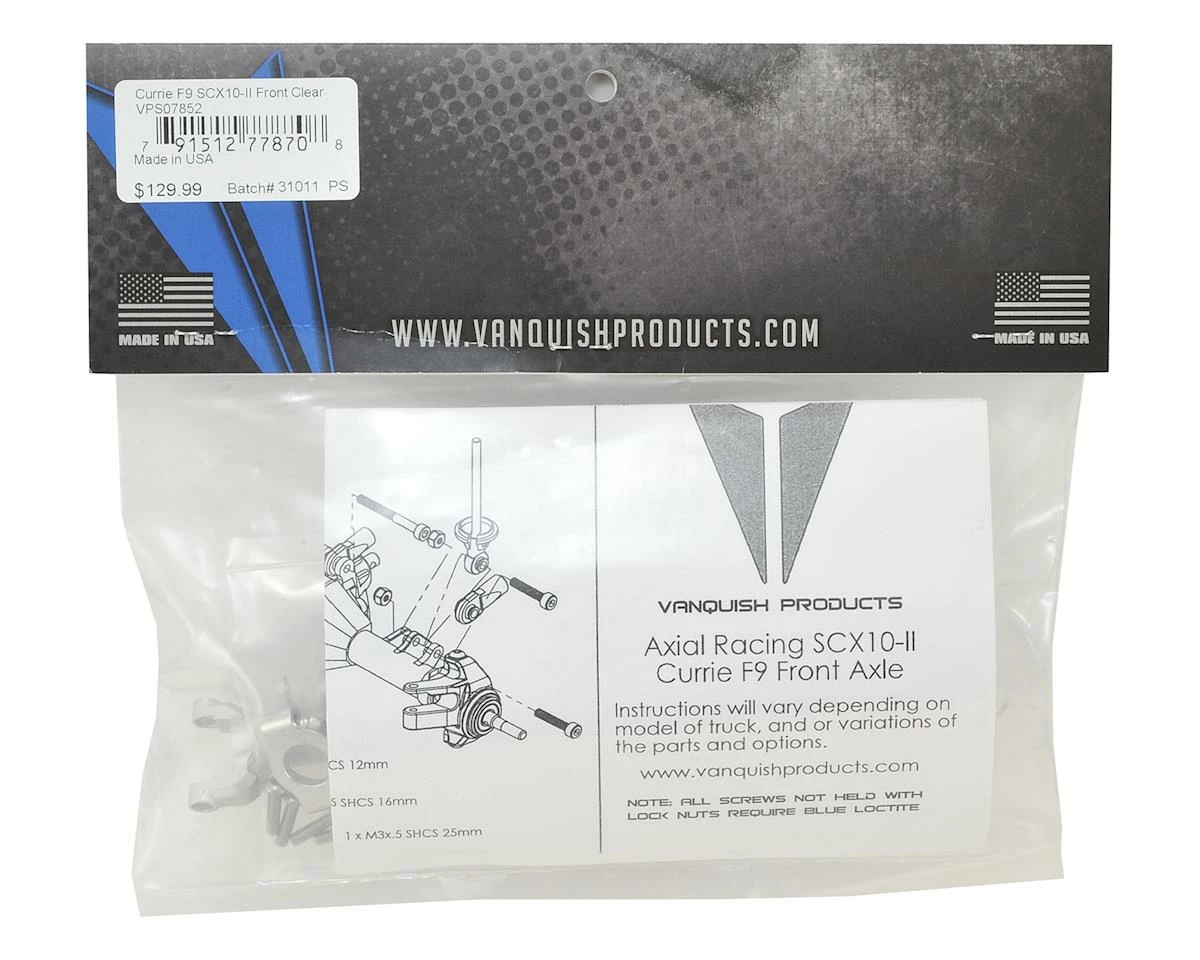 - Vanquish Products Currie F9 Aluminum Axle for Axial SCX10-II