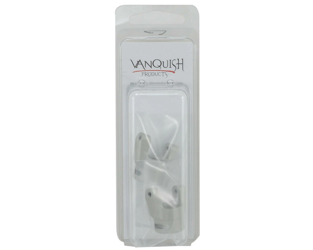 This is an optional Vanquish Products “Incision” C-Hub Set, and is intended for use with the Axial XR-10 and Wraith. These heavy duty c-hubs are precision machined from high quality aluminum, hard anodized and dust finished for durability and unique looks. They have been designed to work with the stock knuckles, as well as the Vanquish “Incision” Zero Ackermann knuckles and have been machined for clocking, then broached for proper fit.